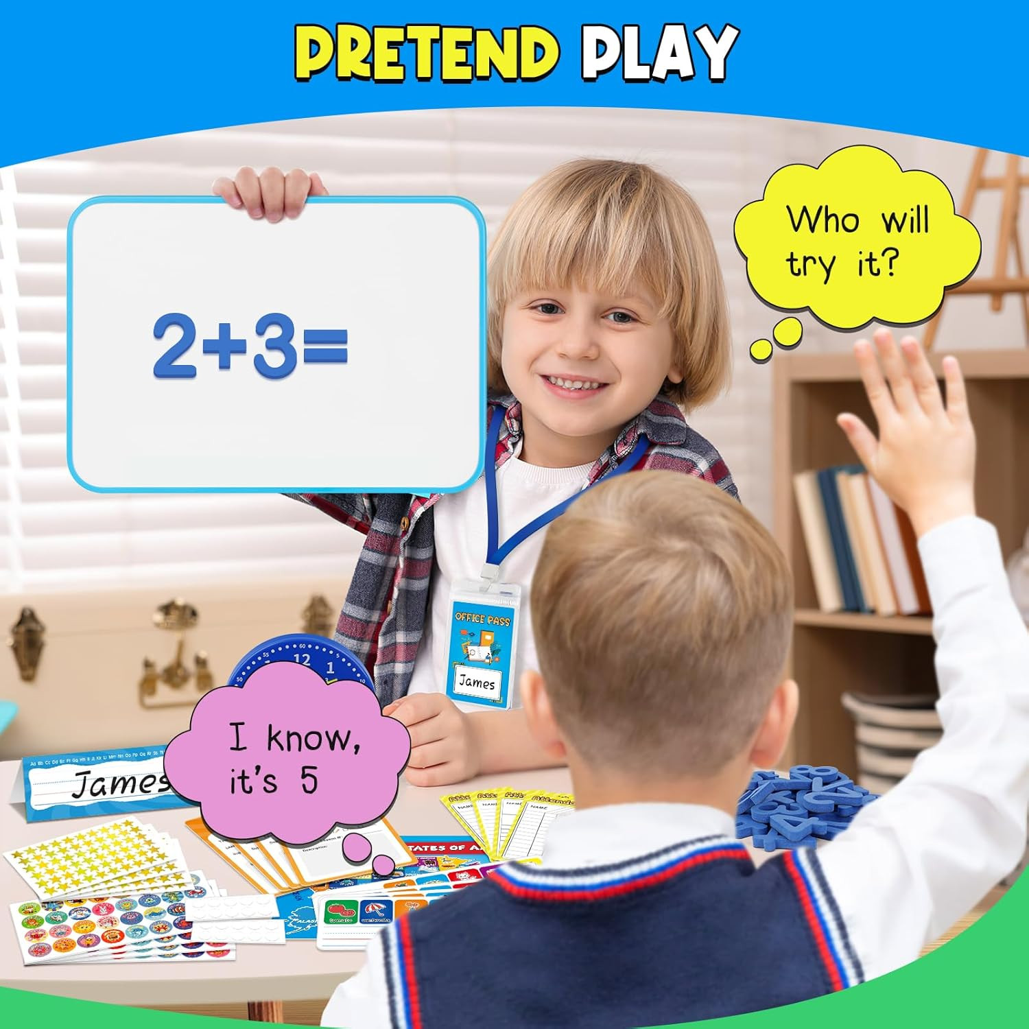 Pretend Play Teacher Set for Kids, Classroom Role Playset with Whiteboard, Magne