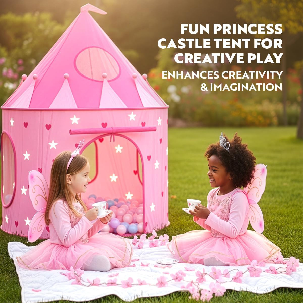 Princess Castle Pop up Tent Dress up Set Kids Pink Playhouse Tent for Girls