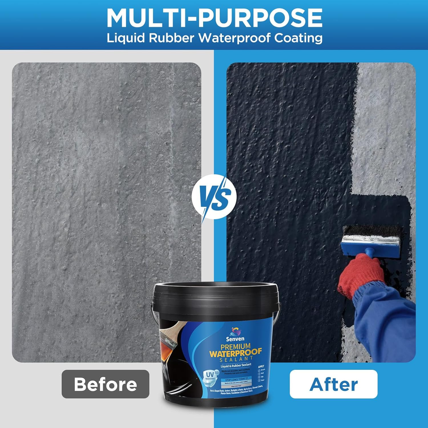 Waterproof Sealant Black Waterproof Coating 35Oz Leak Repair Coating for Flat, M