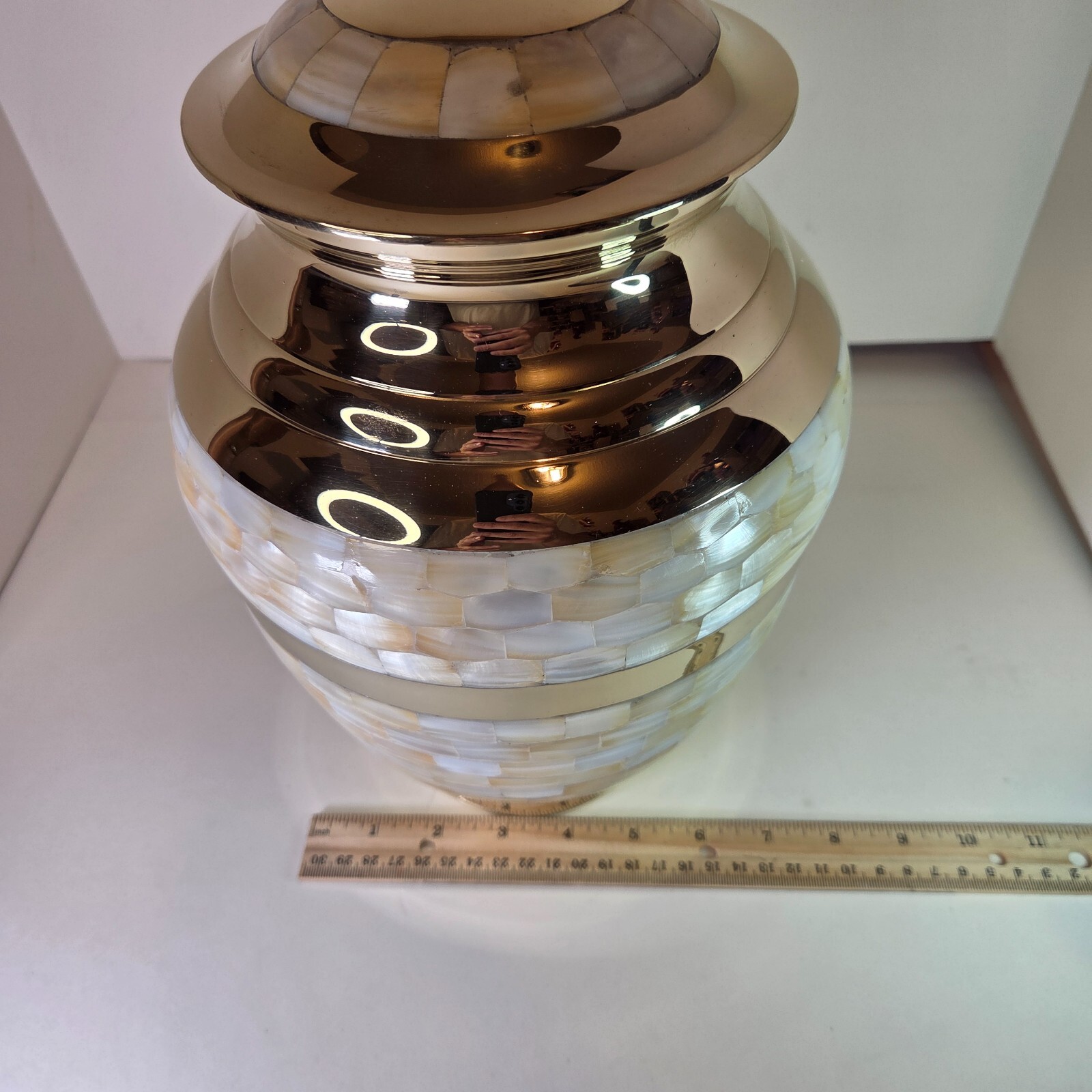 как выглядит Large 12" Brass Mother of Pearl Cremation Urn for Adult Ashes фото