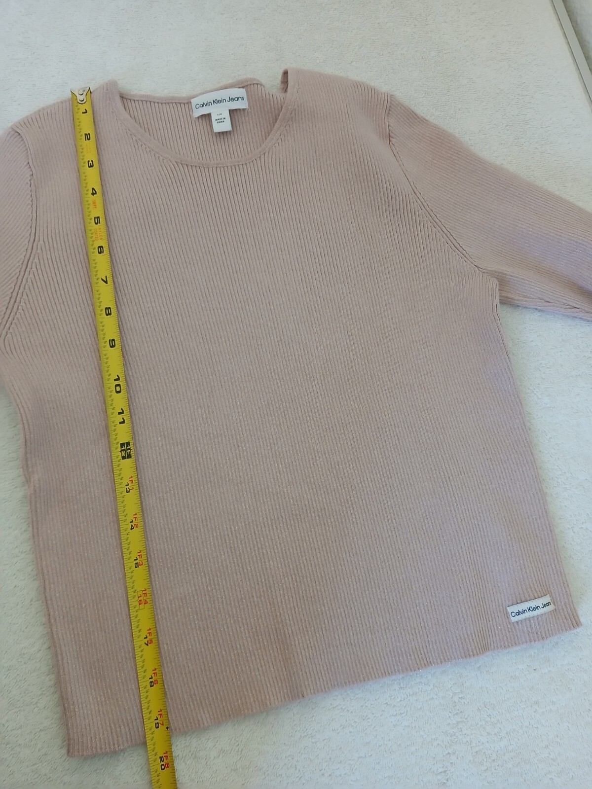 как выглядит Calvin Klein Jeans Cropped Sweater Pink Metalic Round Neck Size Large фото