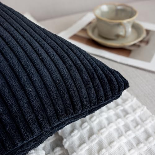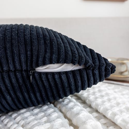 Corduroy Throw Pillow Covers Set of 2 Boho 18 x 18 Pack of 2 Black