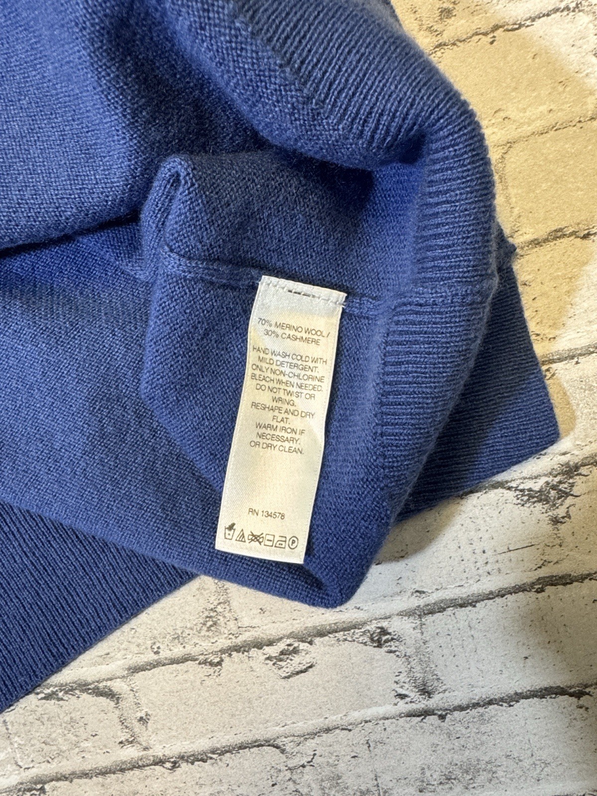 как выглядит Vineyard Vines mens L Large blue solid Merino wool cashmere v-neck sweater фото
