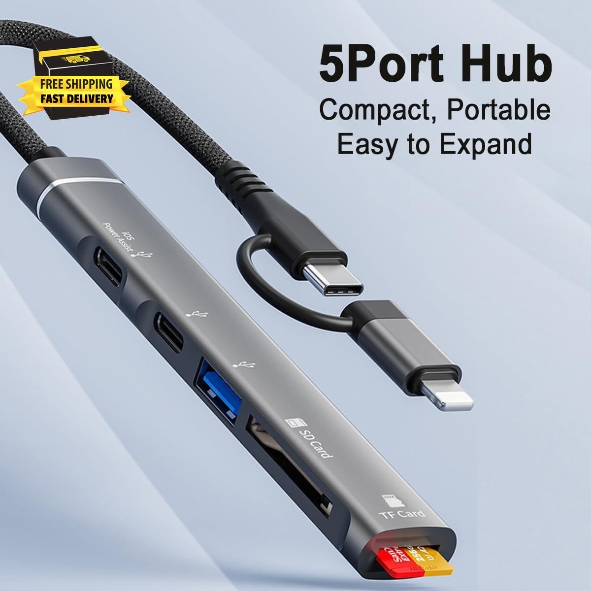 Sd Card Reader for Iphone Ipad, 5-in-1 Lightning Usb-c to Memory Card Viewer Wit