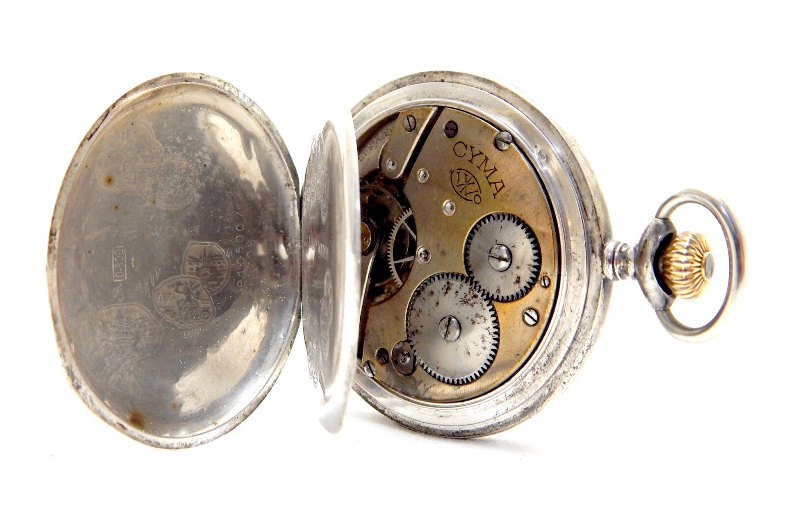 как выглядит Pocket ESCASANY Hunte Movement Cyma Dial Porcelain Silver 52mm 1910c Working фото