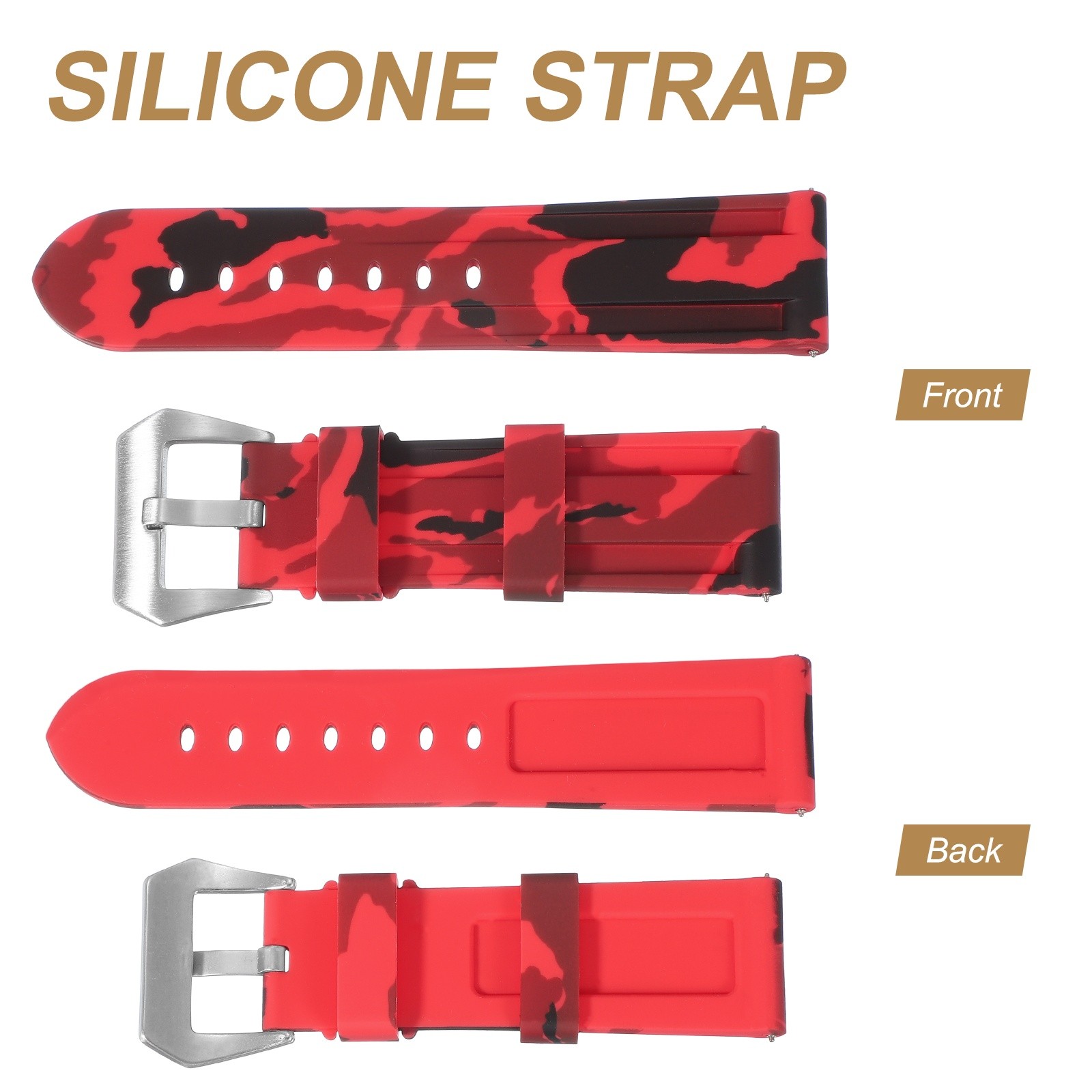 Silicone Watch Band 24mm Rubber Watch Strap with Silver Clasp, Camo Red
