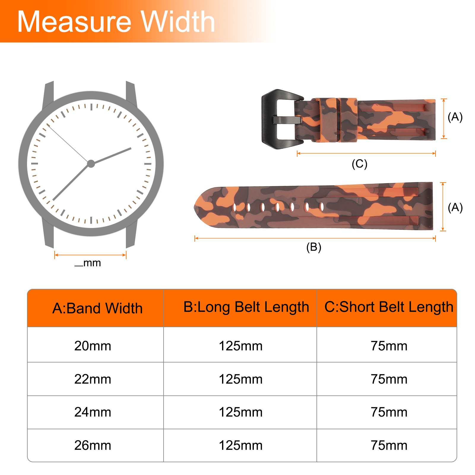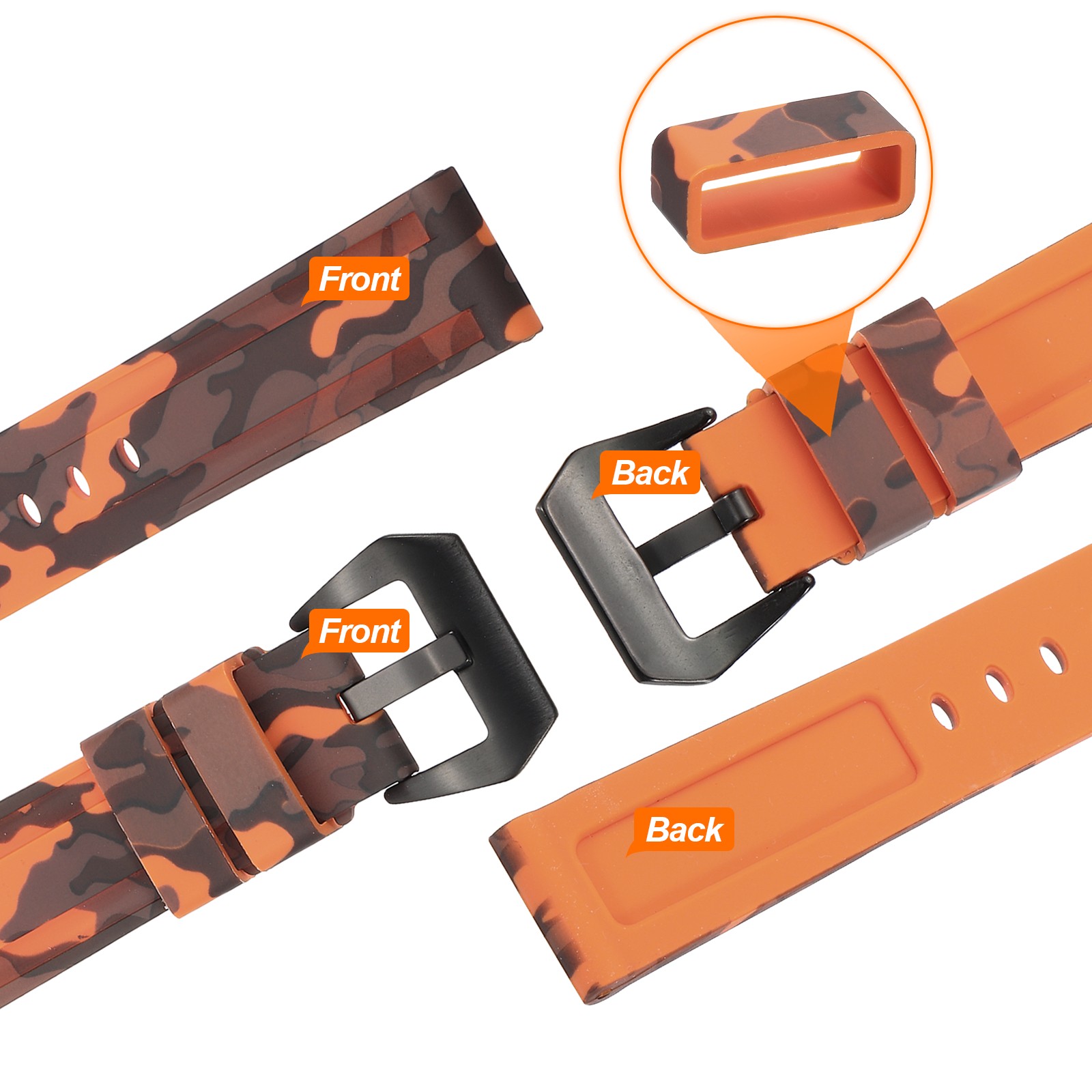 как выглядит Silicone Watch Bands 22mm Soft Watch Band with Black Buckle, Camo Orange фото