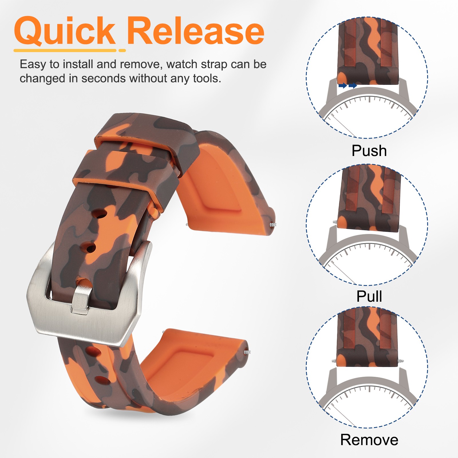 Silicone Watch Bands 20mm Soft Watch Band with Silver Buckle, Camo Orange