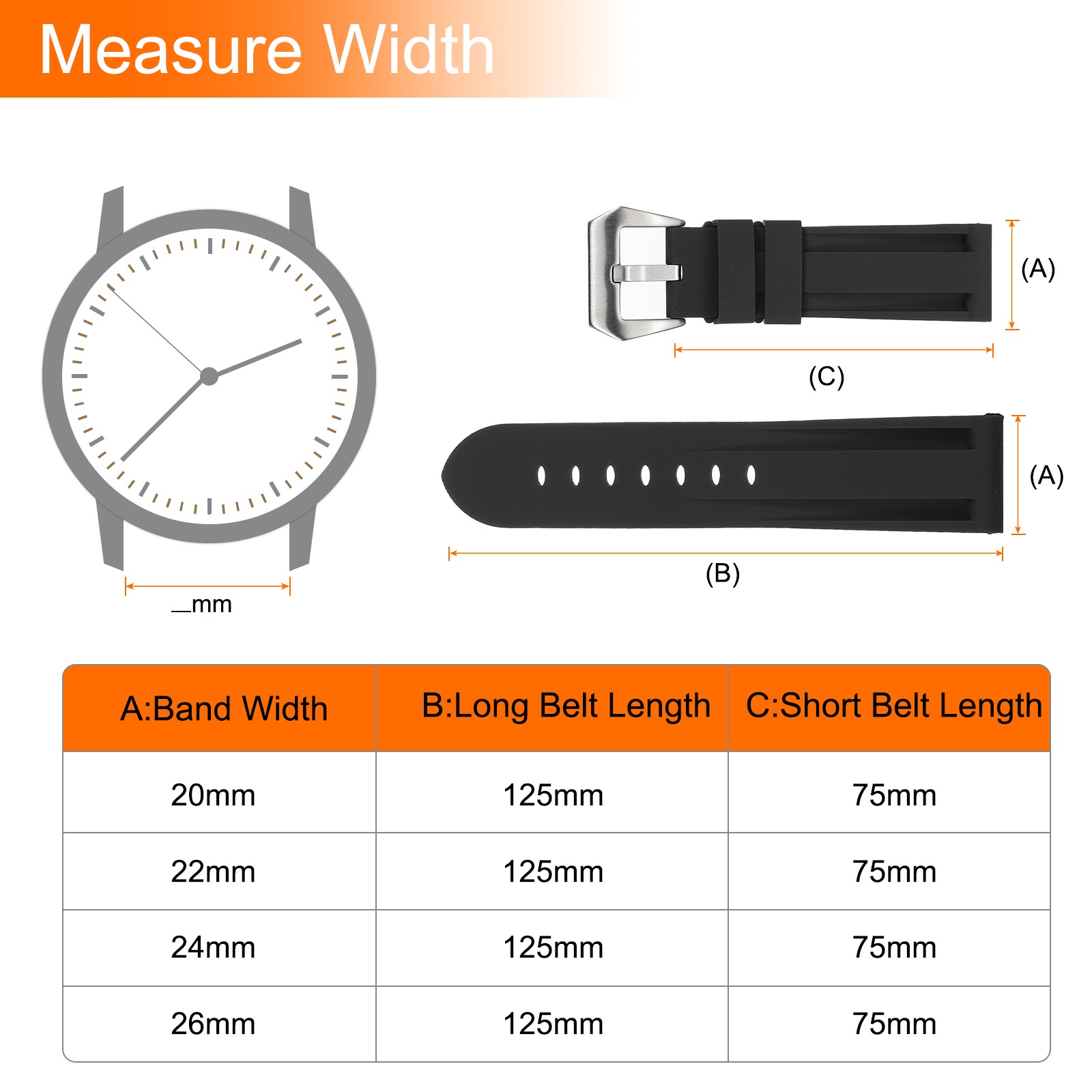как выглядит Silicone Watch Bands 24mm Soft Watch Band with Silver Buckle, Black фото