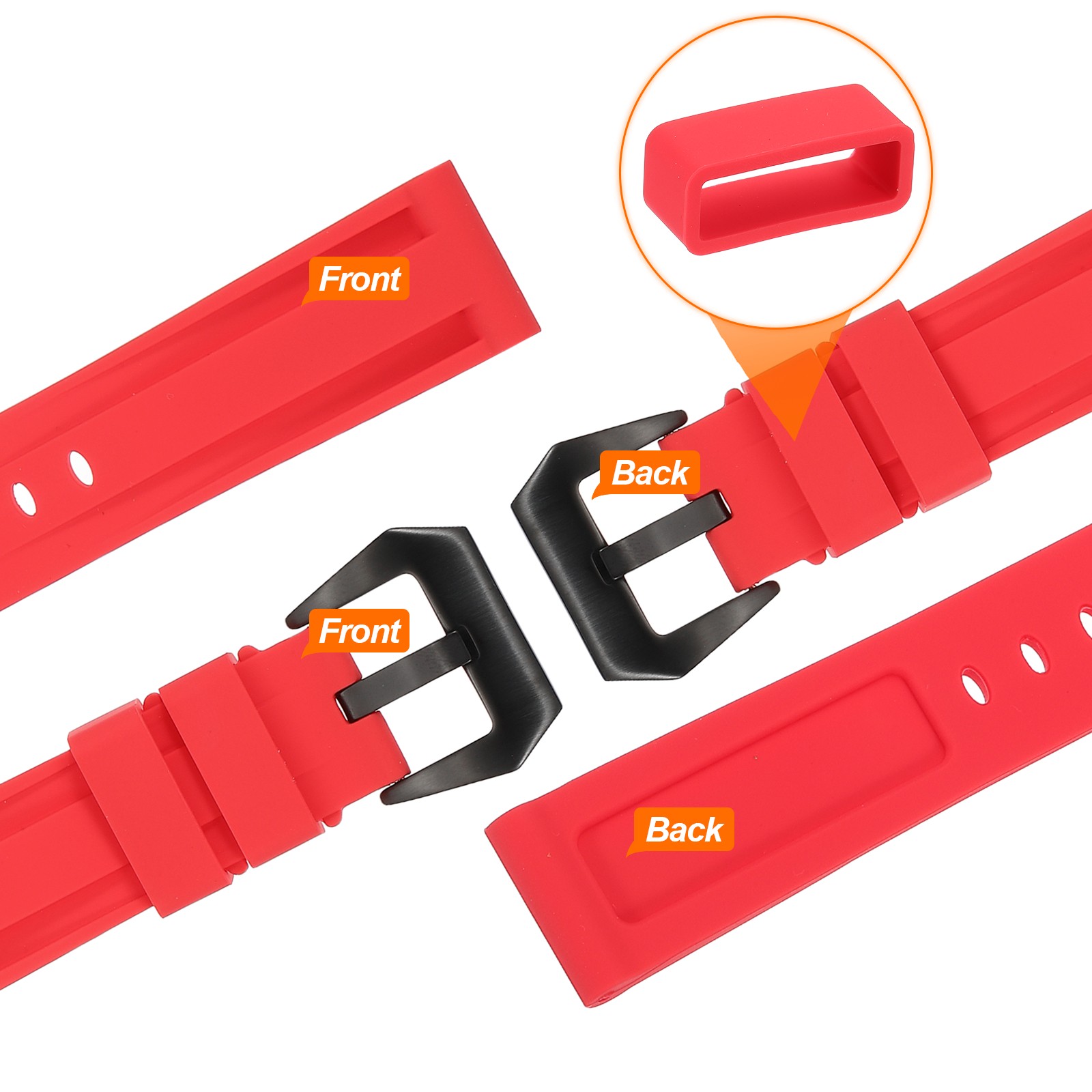 как выглядит Silicone Watch Bands 22mm Soft Watch Band with Black Buckle, Red фото