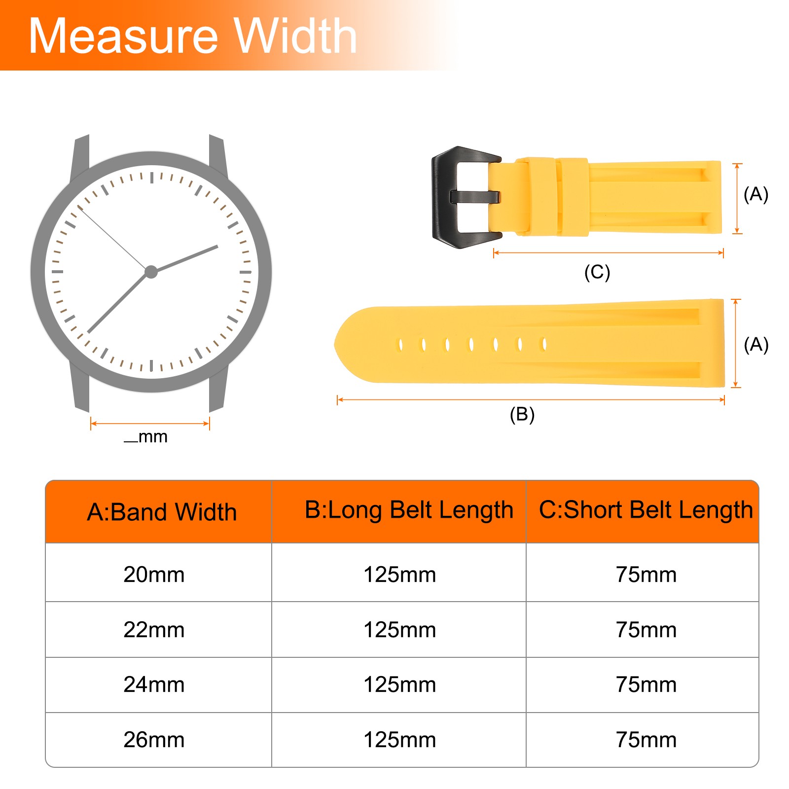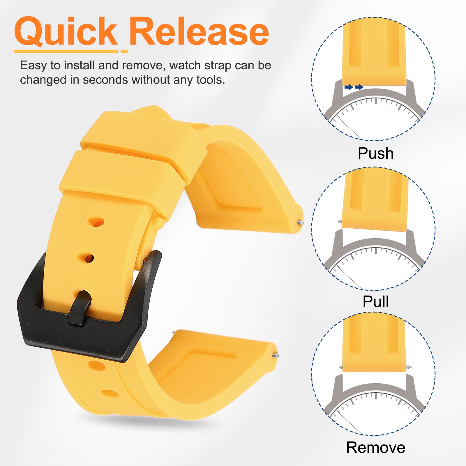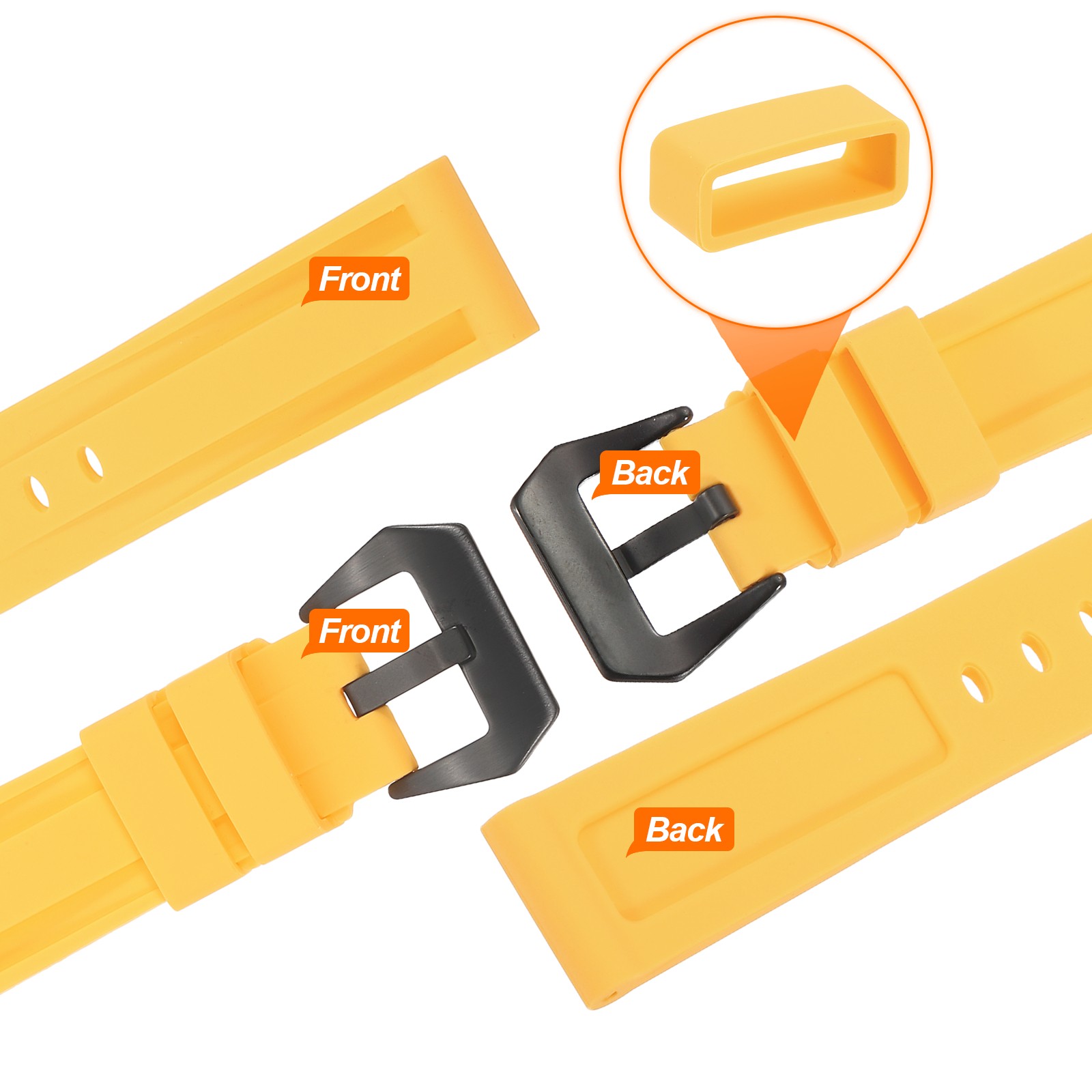 Silicone Watch Bands 24mm Soft Watch Band with Black Buckle, Yellow