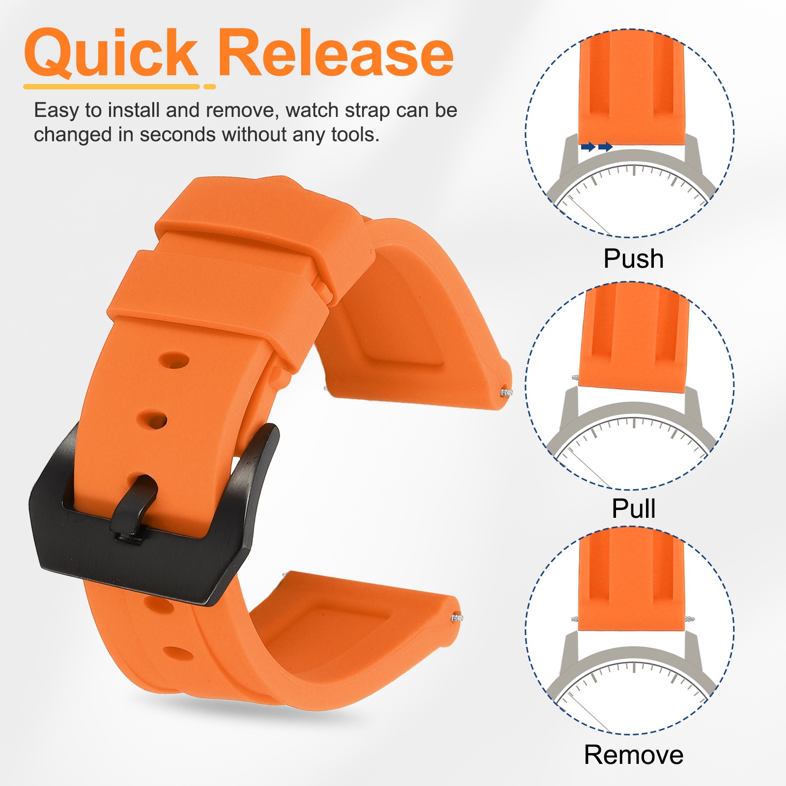 Silicone Watch Bands 24mm Soft Watch Band with Black Buckle, Orange