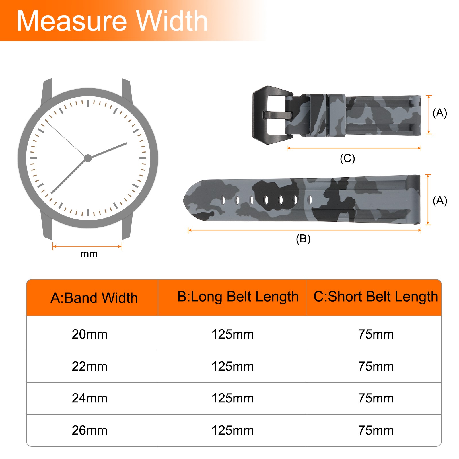 Silicone Watch Bands 22mm Soft Watch Band with Black Buckle, Camo Gray