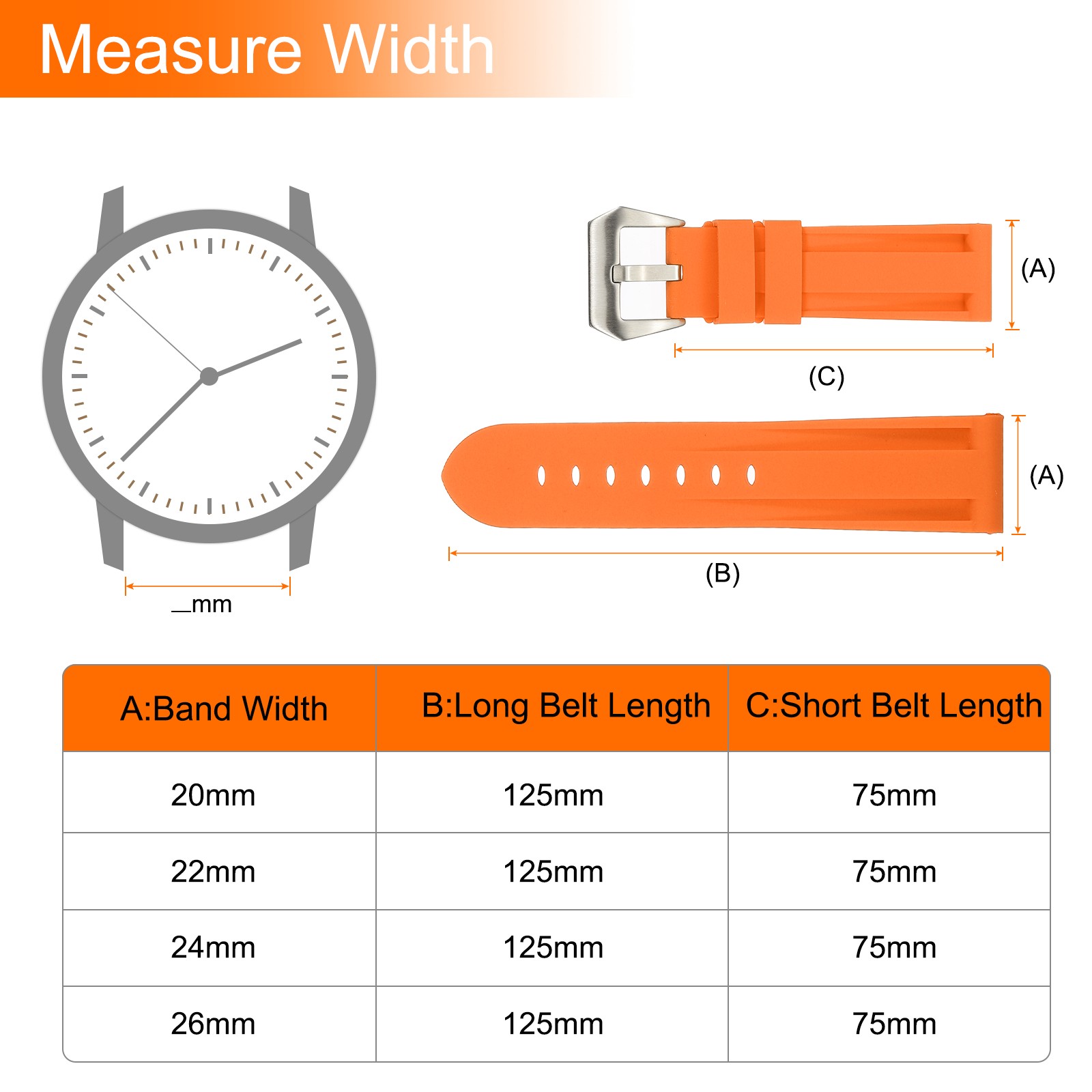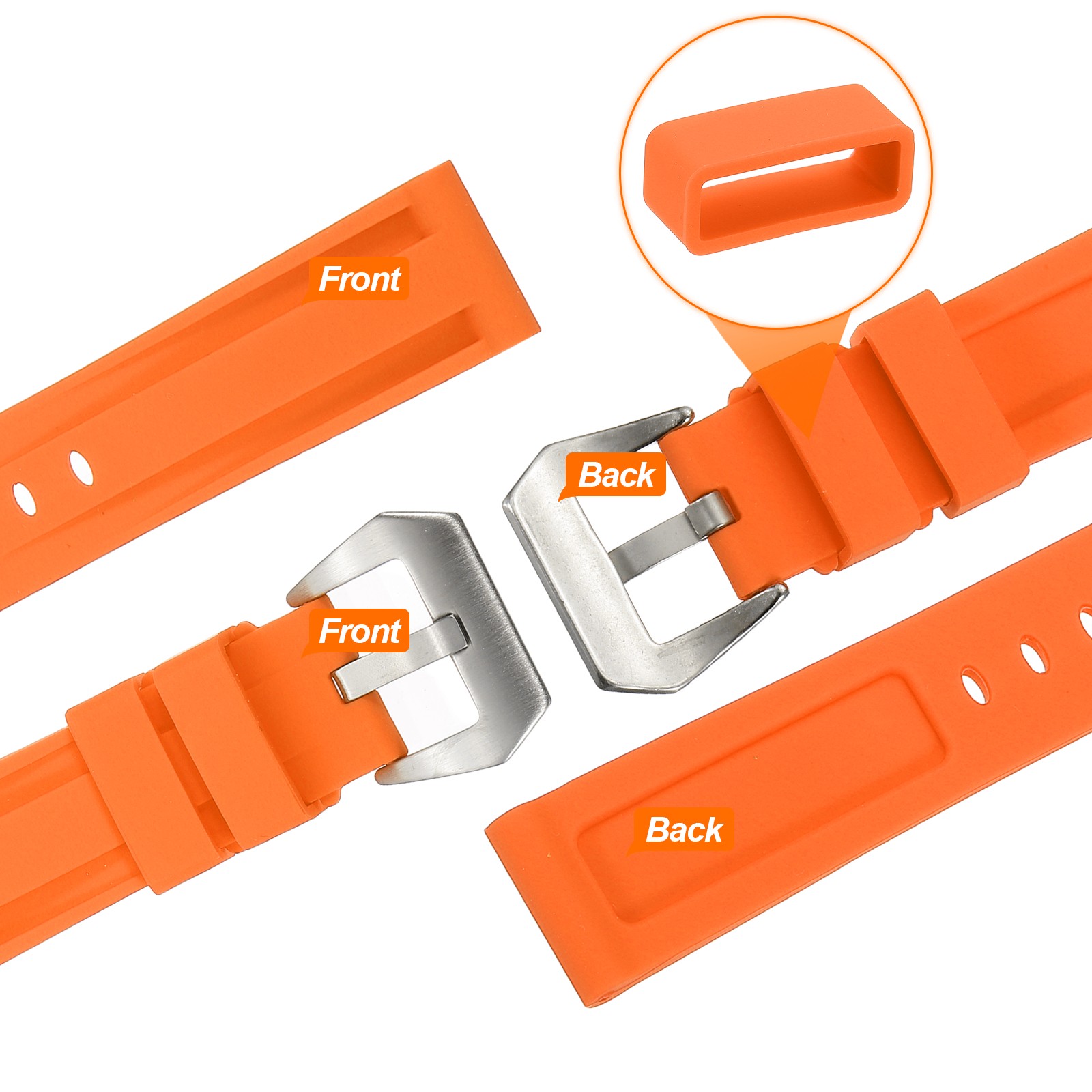как выглядит Silicone Watch Bands 24mm Soft Watch Band with Silver Buckle, Orange фото