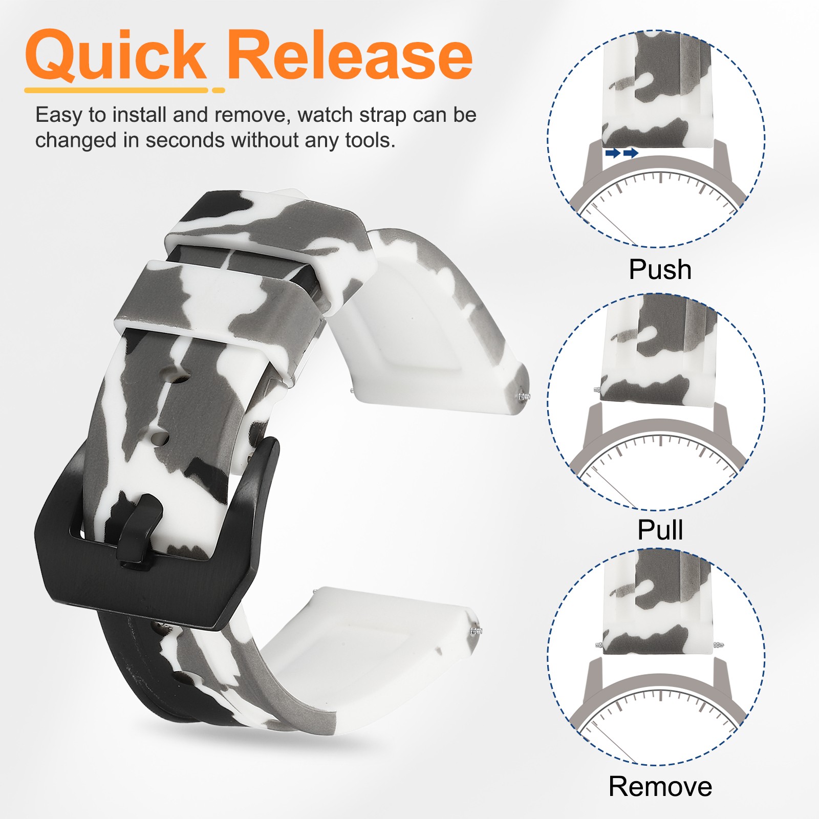 Silicone Watch Bands 22mm Soft Watch Band with Black Buckle, Camo White