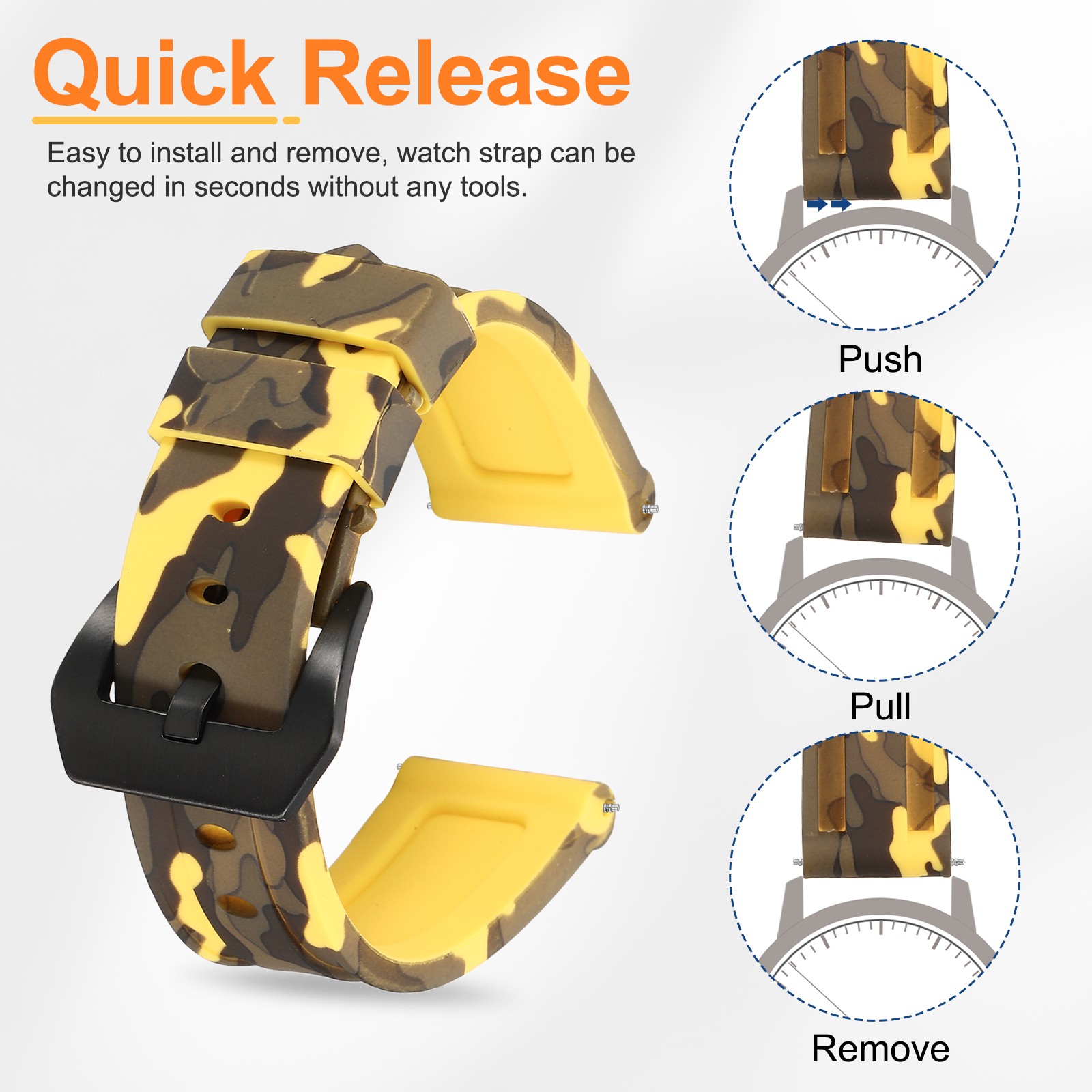 Silicone Watch Bands 22mm Soft Watch Band with Black Buckle, Camo Yellow