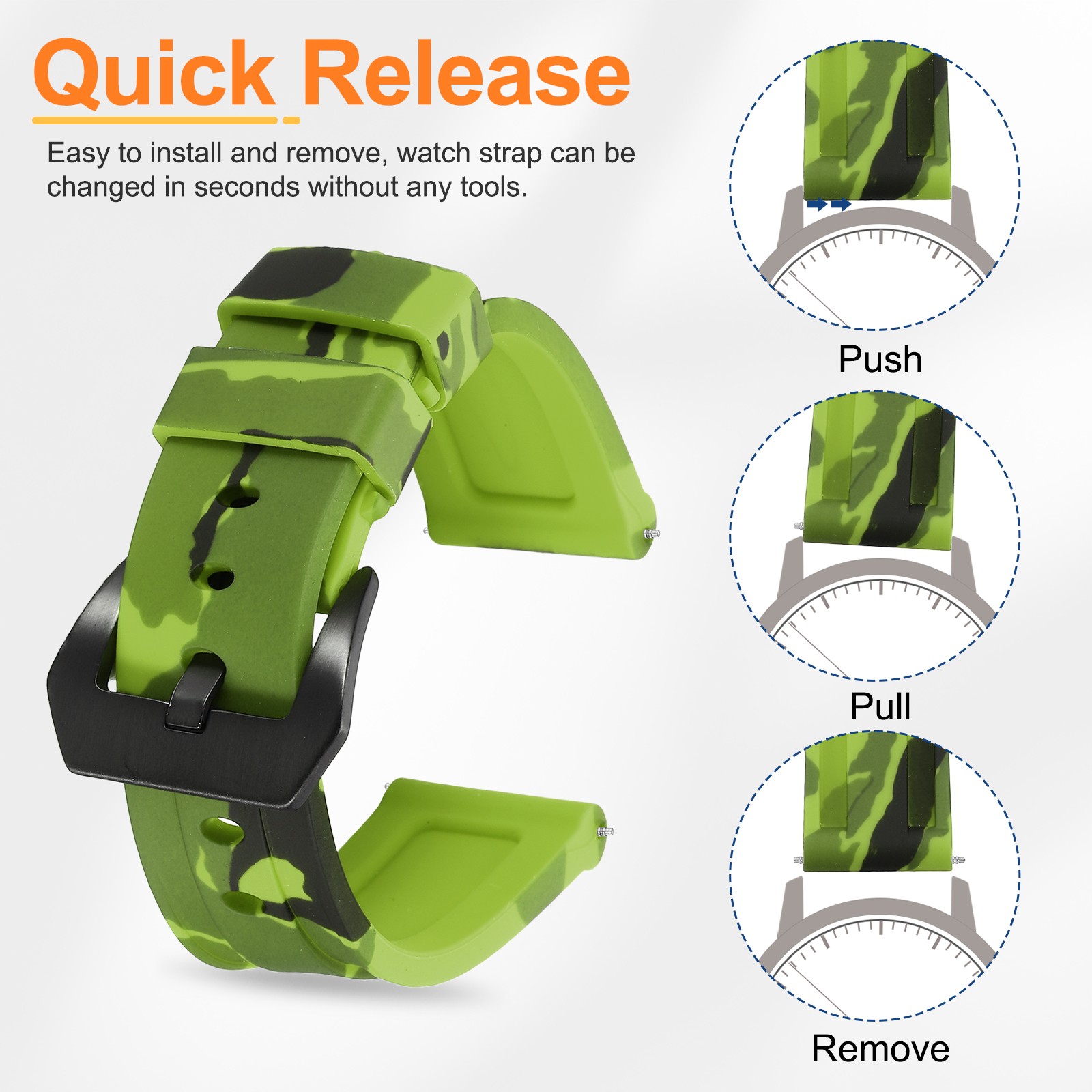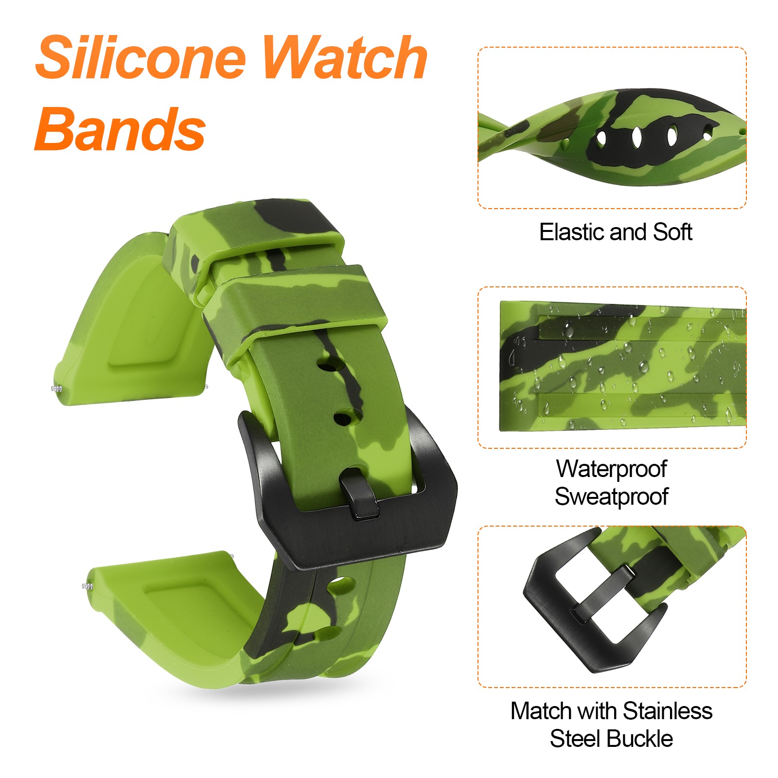 Silicone Watch Bands 22mm Soft Watch Band with Black Buckle, Camo Light Green