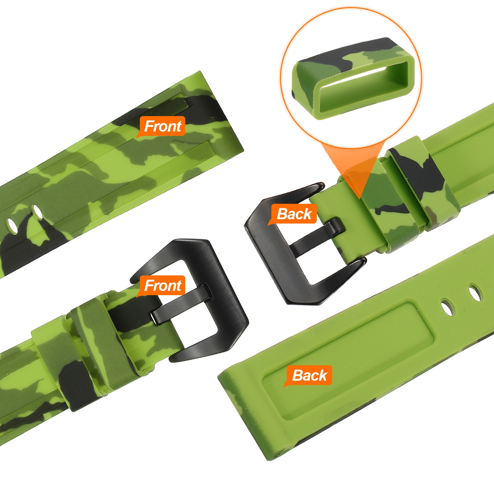 как выглядит Silicone Watch Bands 22mm Soft Watch Band with Black Buckle, Camo Light Green фото