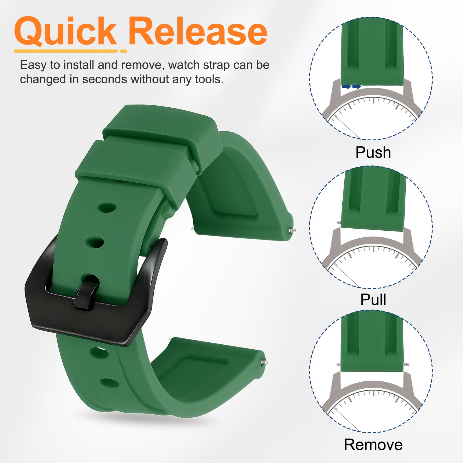 Silicone Watch Bands 22mm Soft Watch Band with Black Buckle, Drak Green