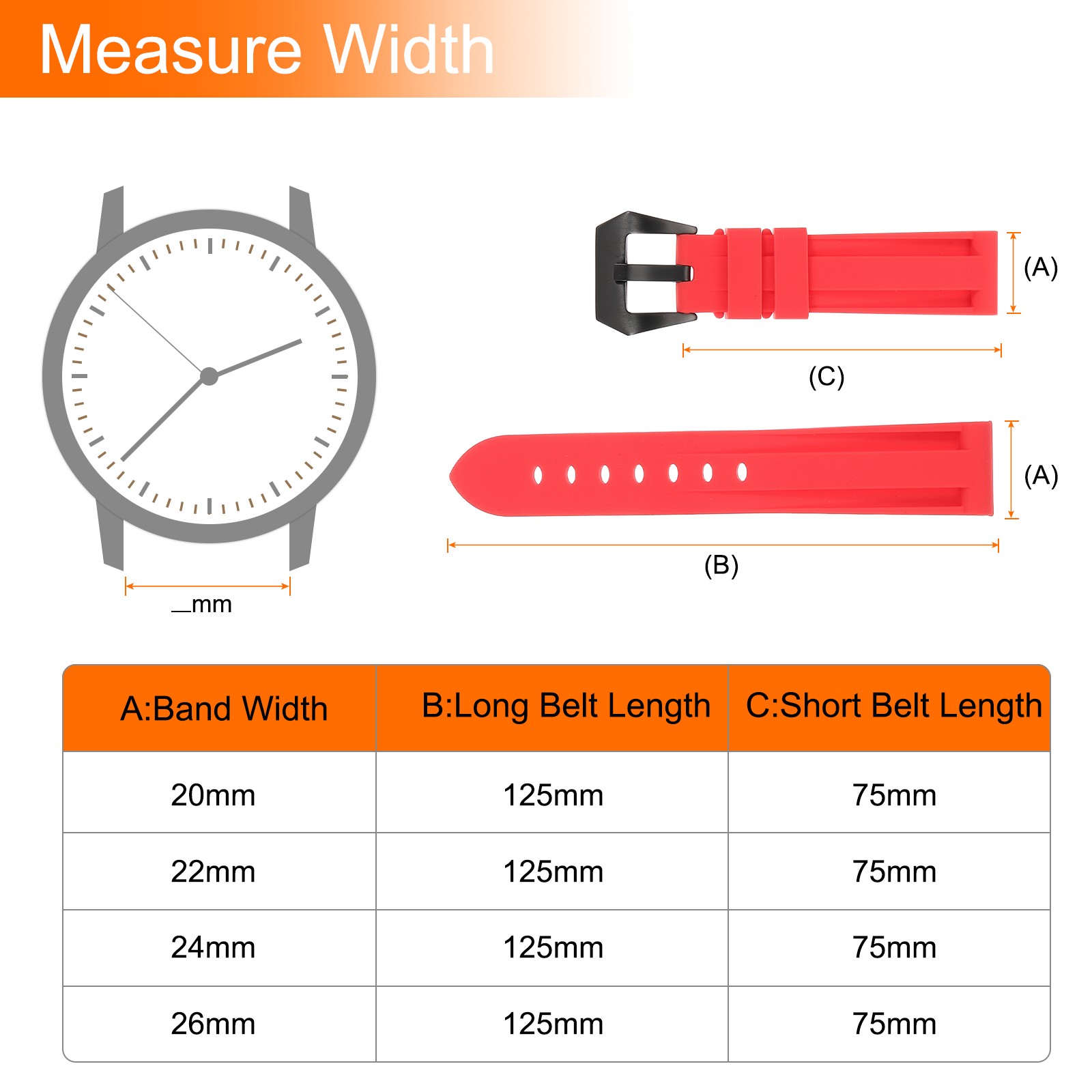 как выглядит Silicone Watch Bands 20mm Soft Watch Band with Black Buckle, Red фото