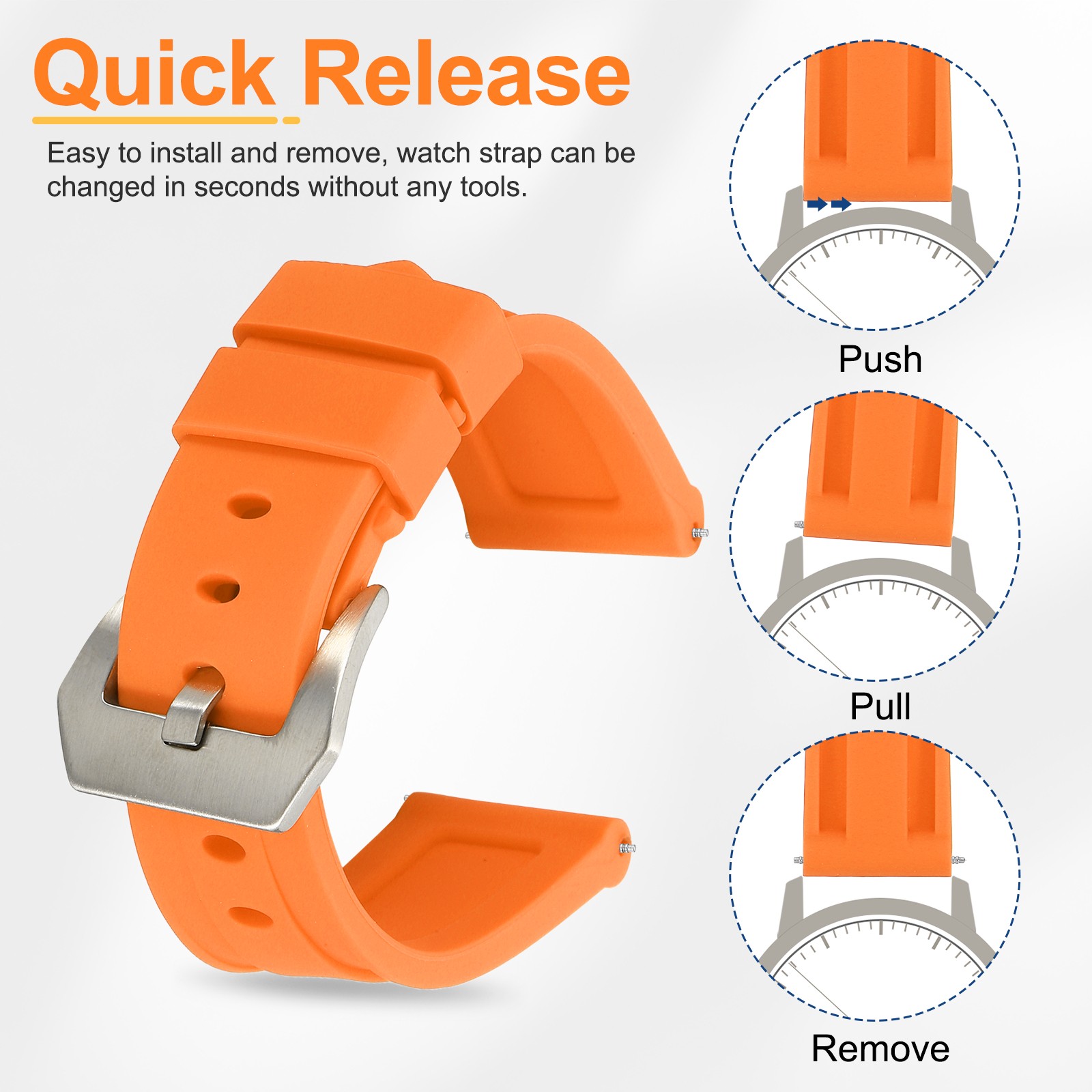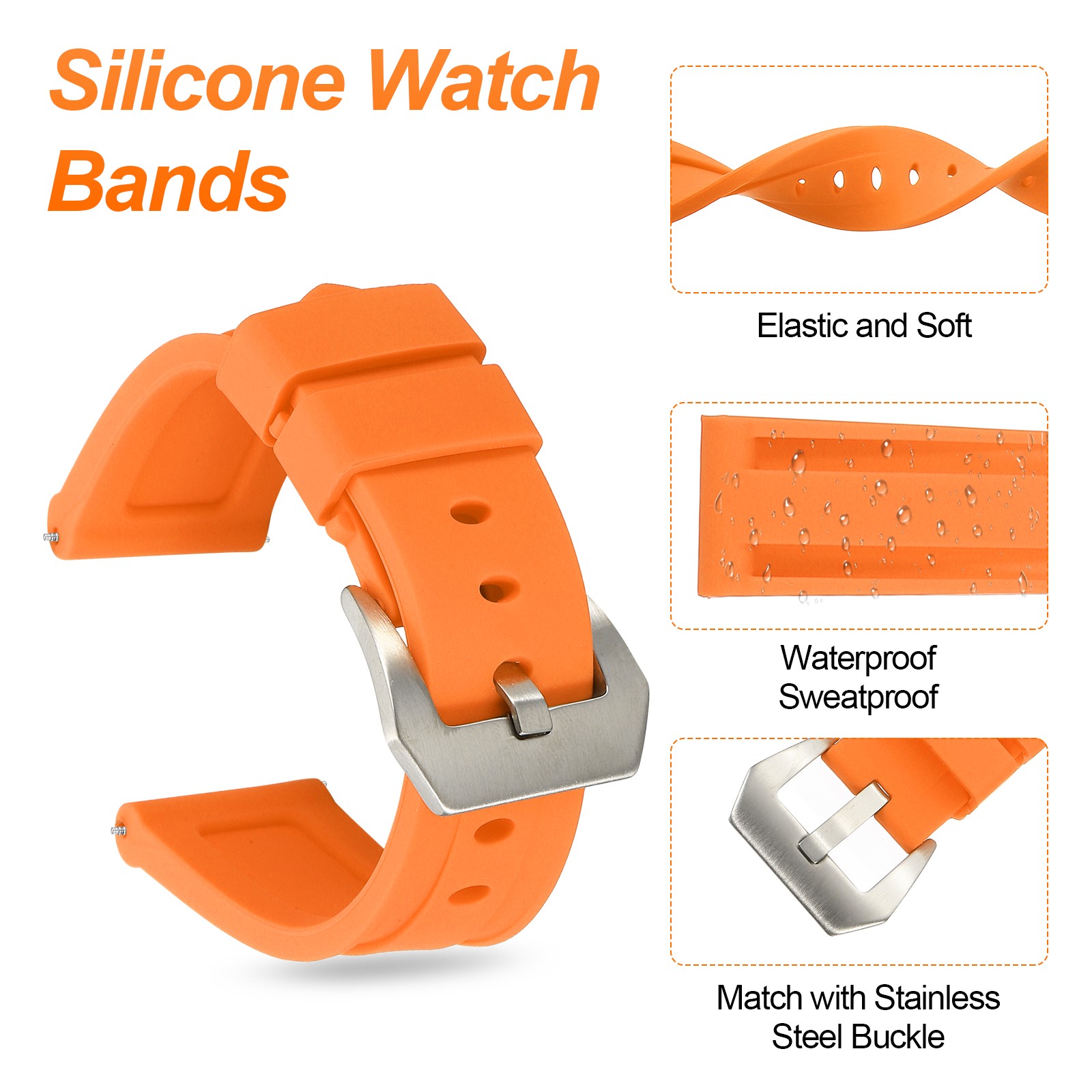Silicone Watch Bands 22mm Soft Watch Band with Silver Buckle, Orange