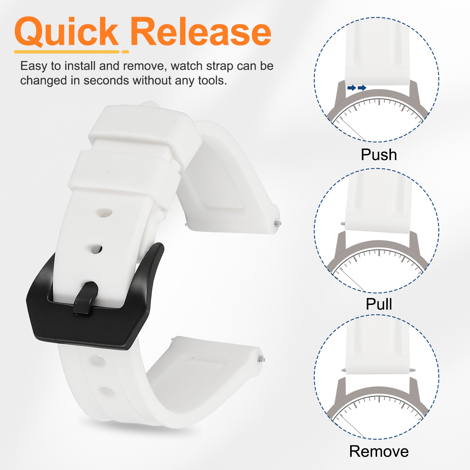 Silicone Watch Bands 20mm Soft Watch Band with Black Buckle, White