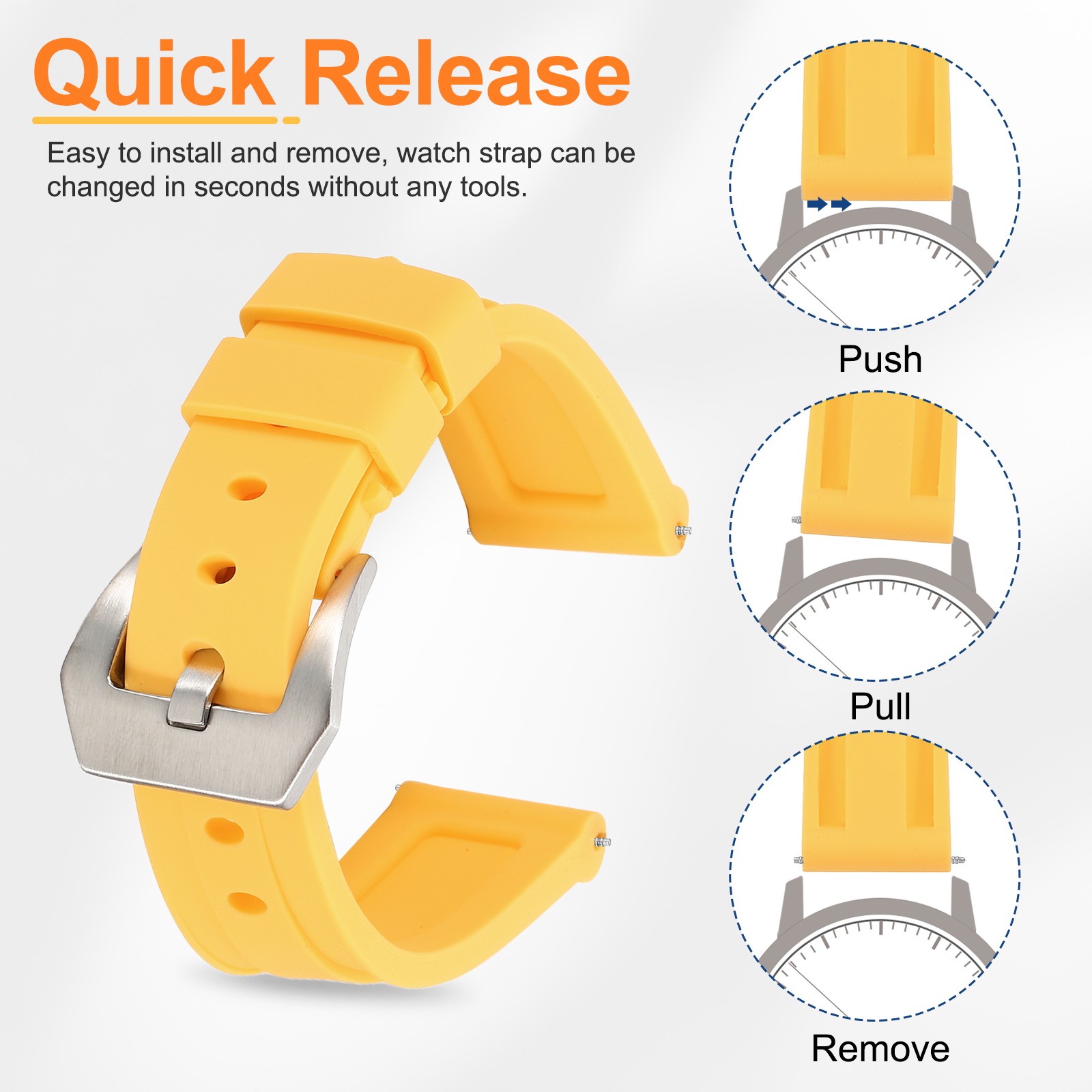 Silicone Watch Bands 20mm Soft Watch Band with Silver Buckle, Yellow