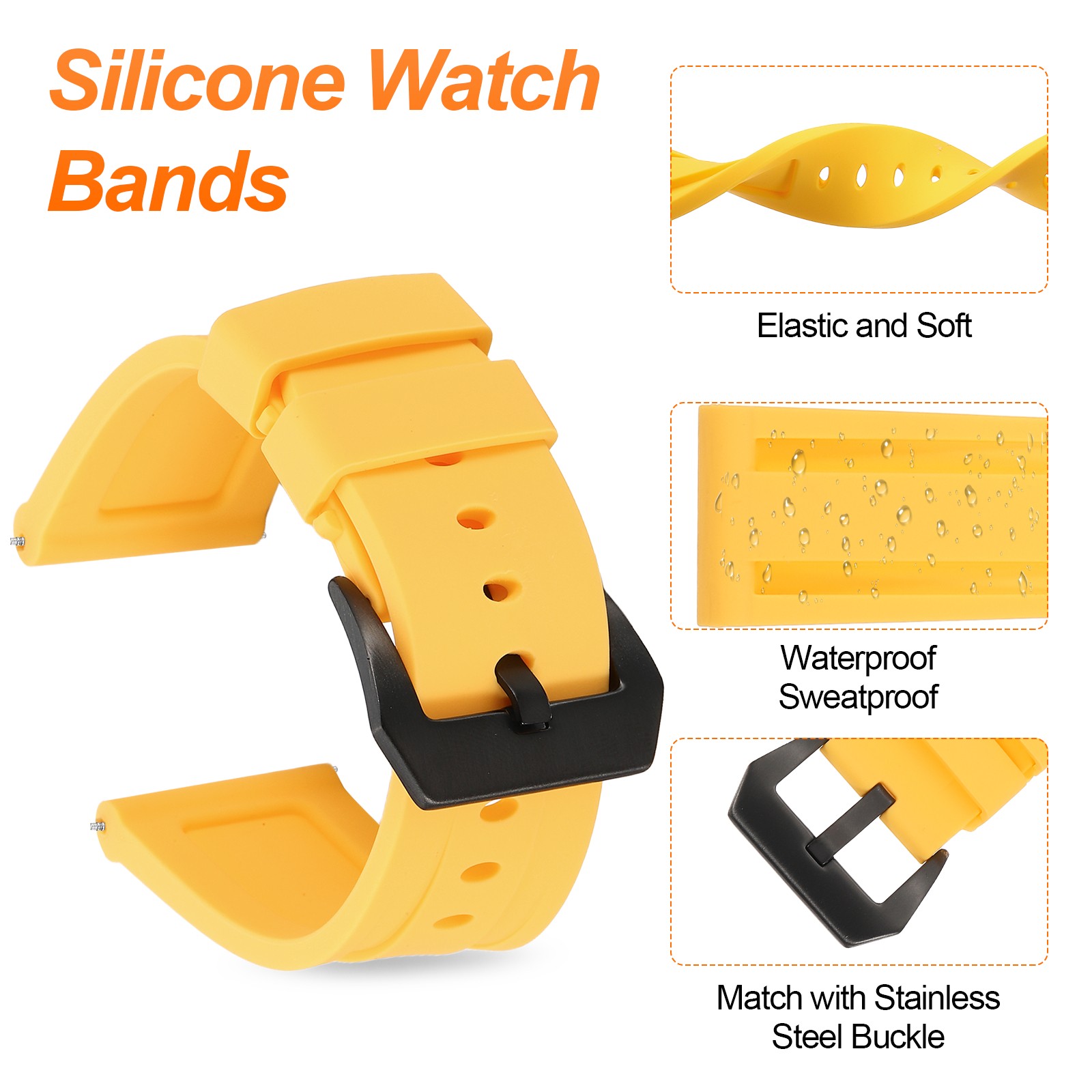 Silicone Watch Bands 26mm Soft Watch Band with Black Buckle, Yellow