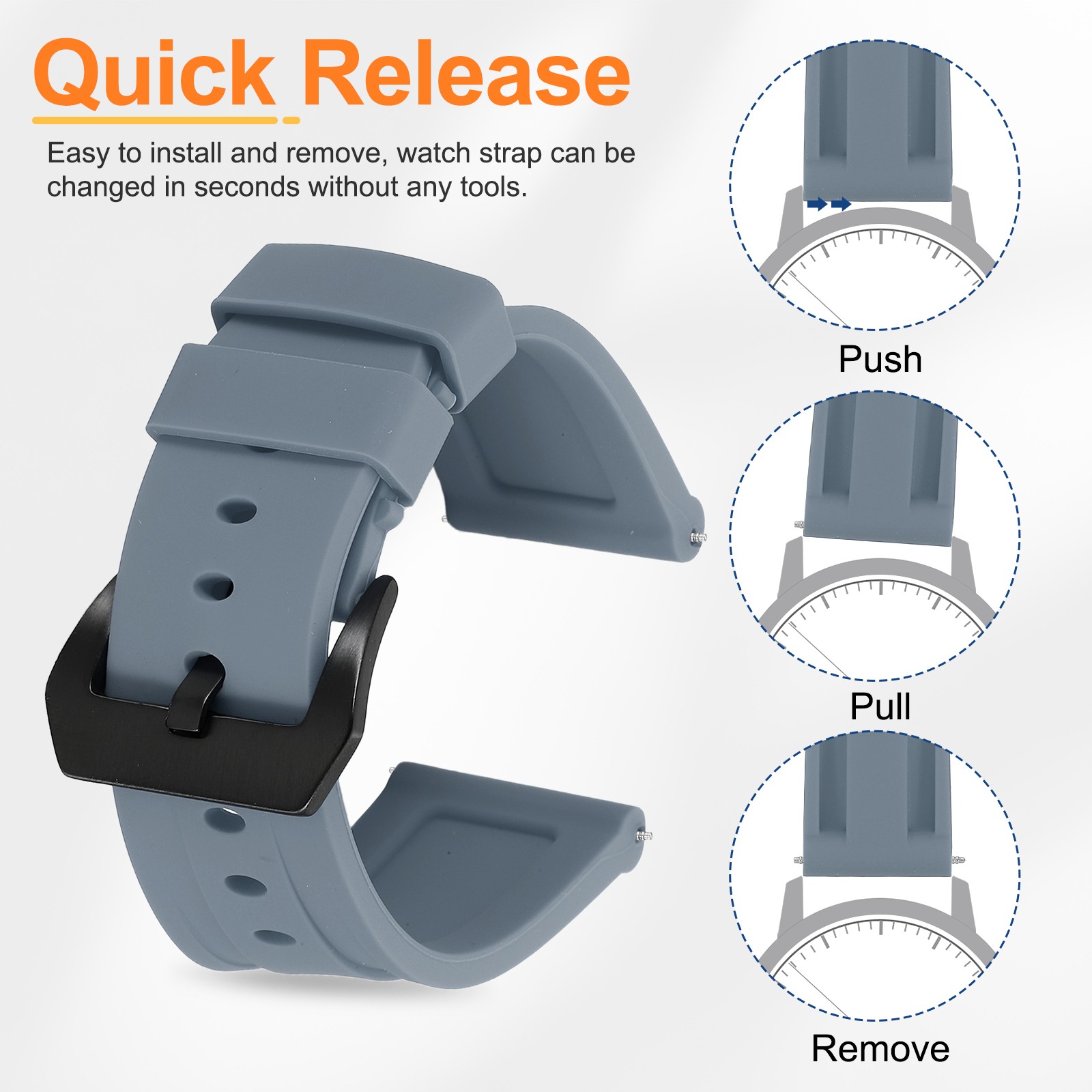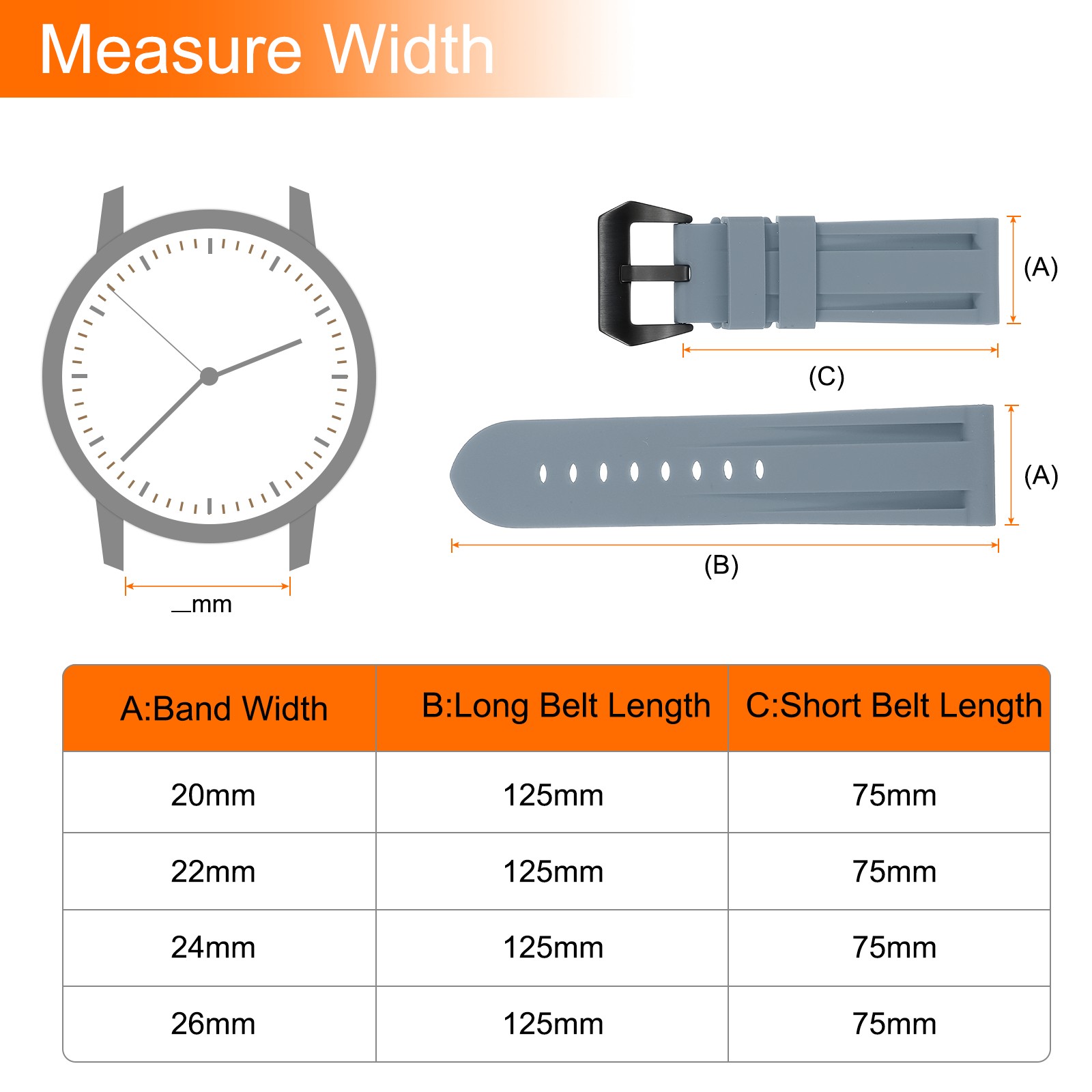 Silicone Watch Bands 26mm Soft Watch Band with Black Buckle, Gray