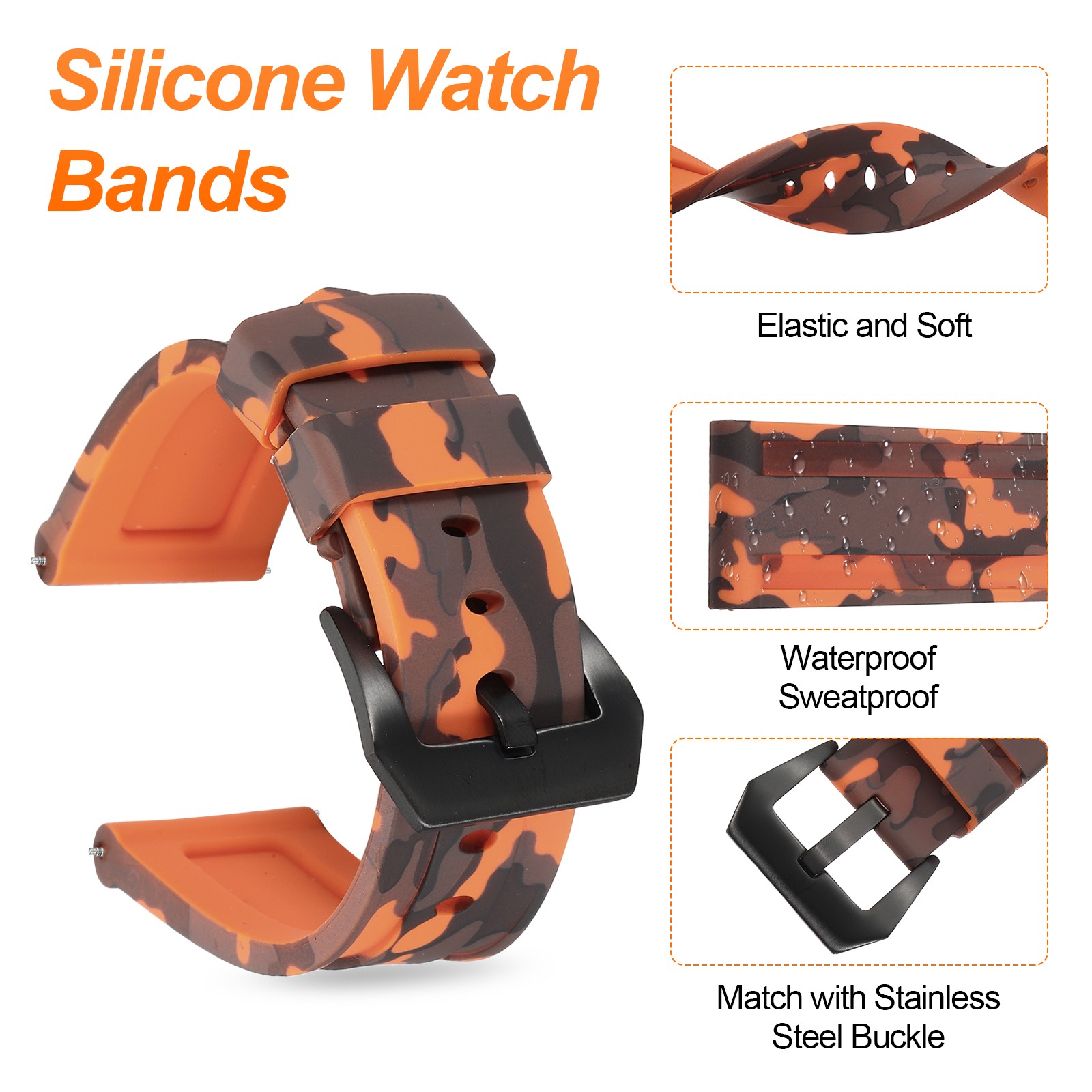 Silicone Watch Bands 24mm Soft Watch Band with Black Buckle, Camo Orange