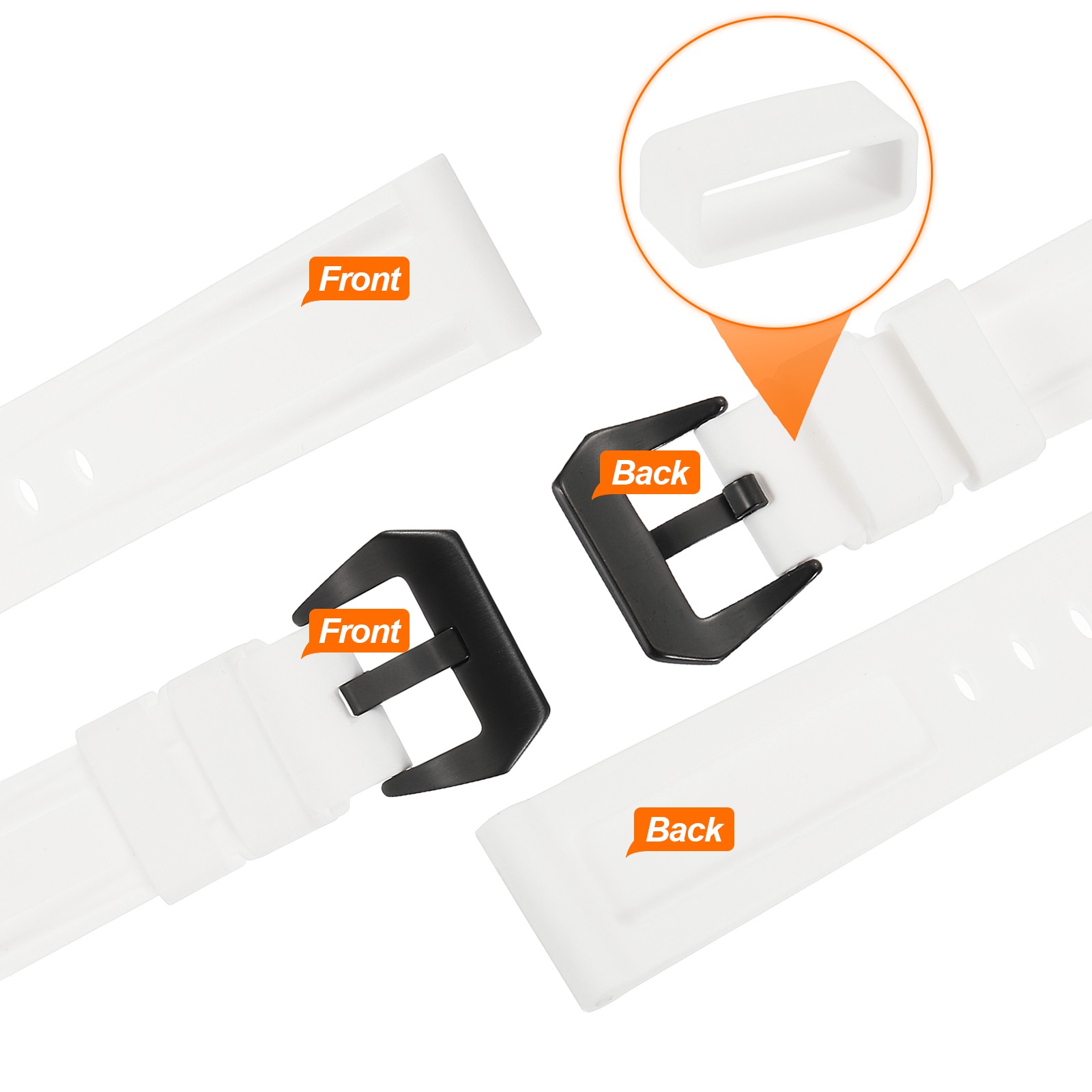Silicone Watch Bands 24mm Soft Watch Band with Black Buckle, White