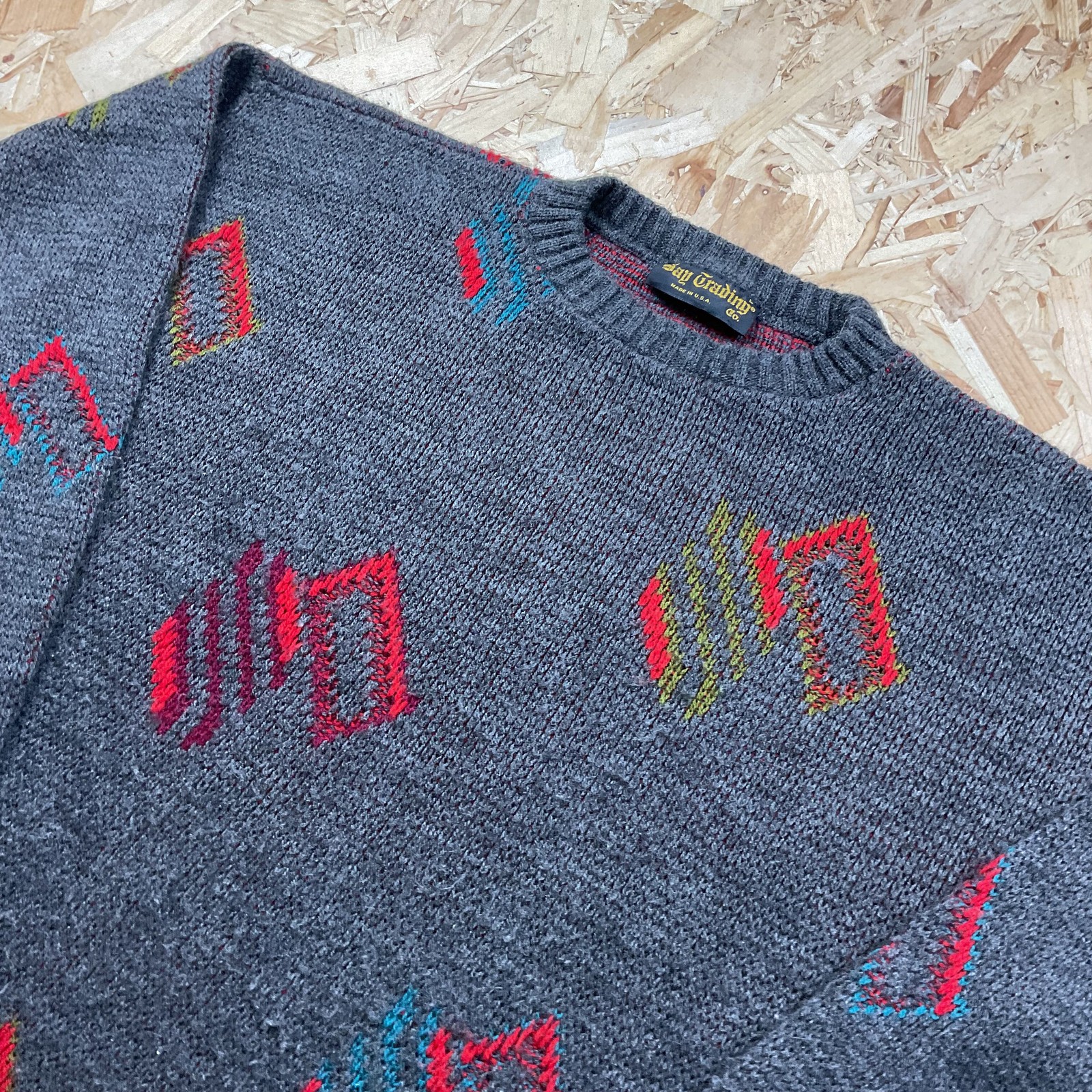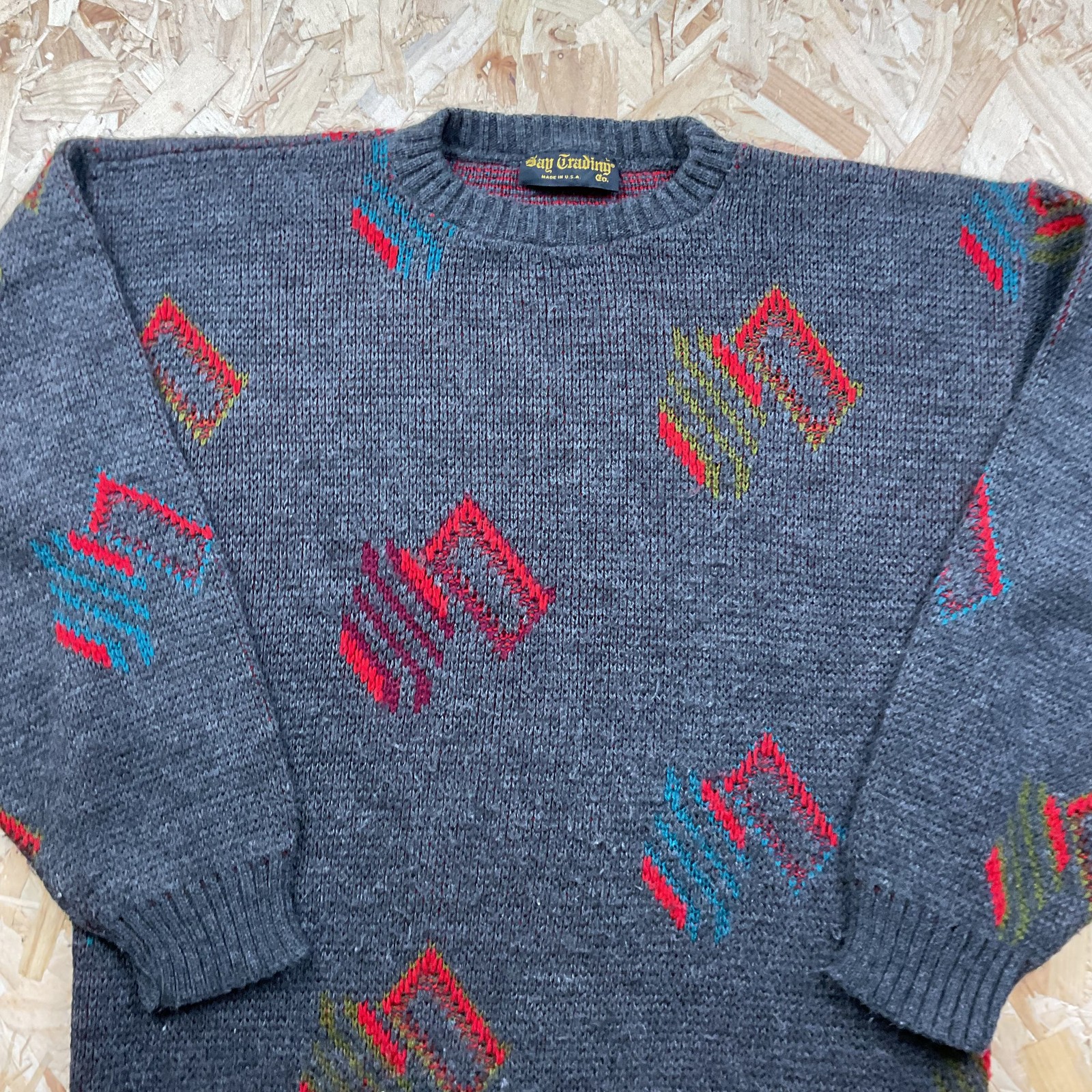 Vintage Bay Trading Dark Grey Jumper Abstract Pattern Grandad Sweater L