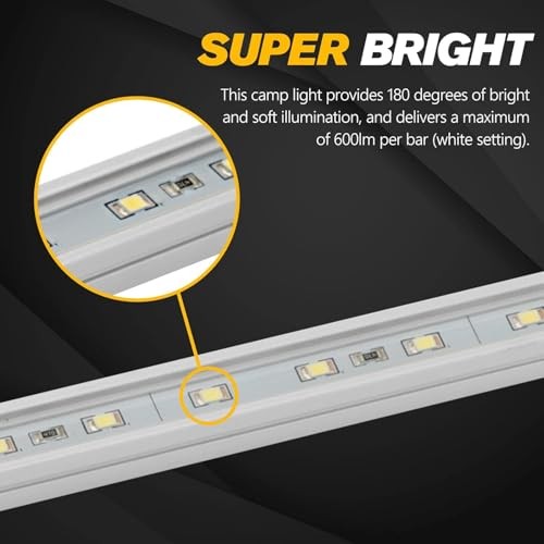 12V Interior Light Bar Kit, Dimmable Camping Lights, 6 PCS White Amber