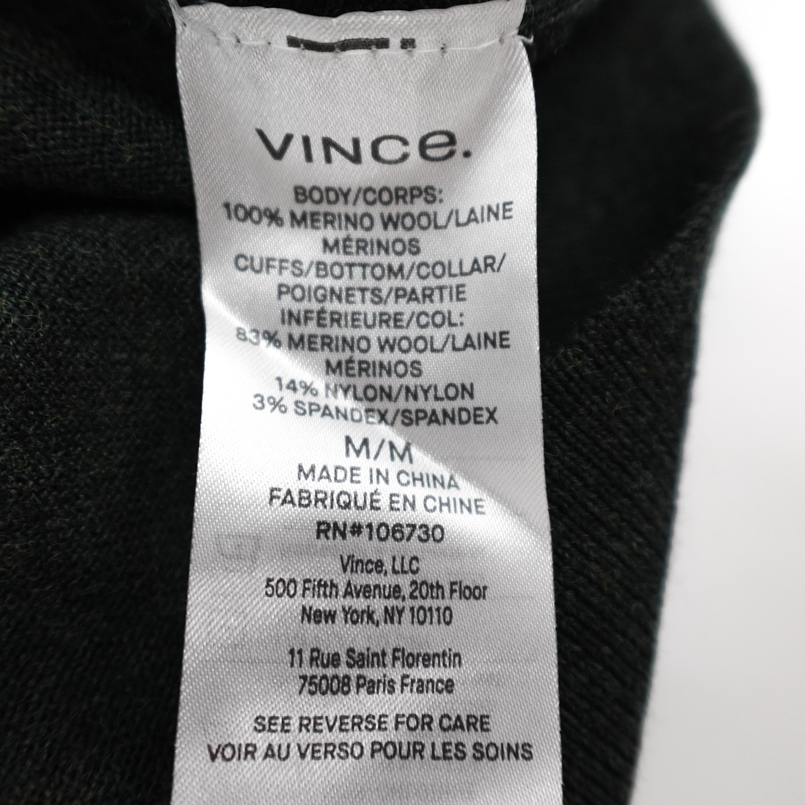 Vince Sweater Mens Medium Green Merino Wool Crewneck Fine Knit Pullover