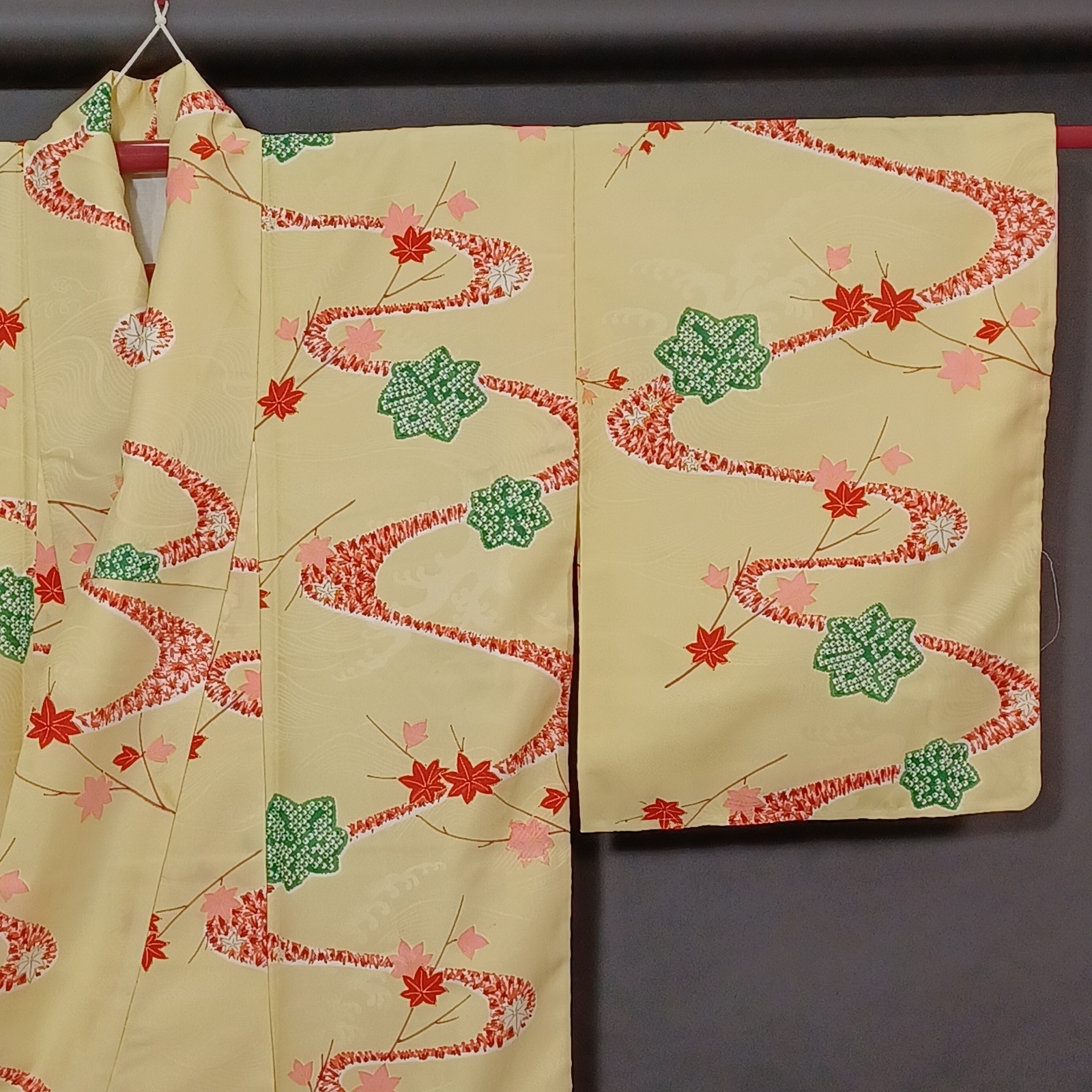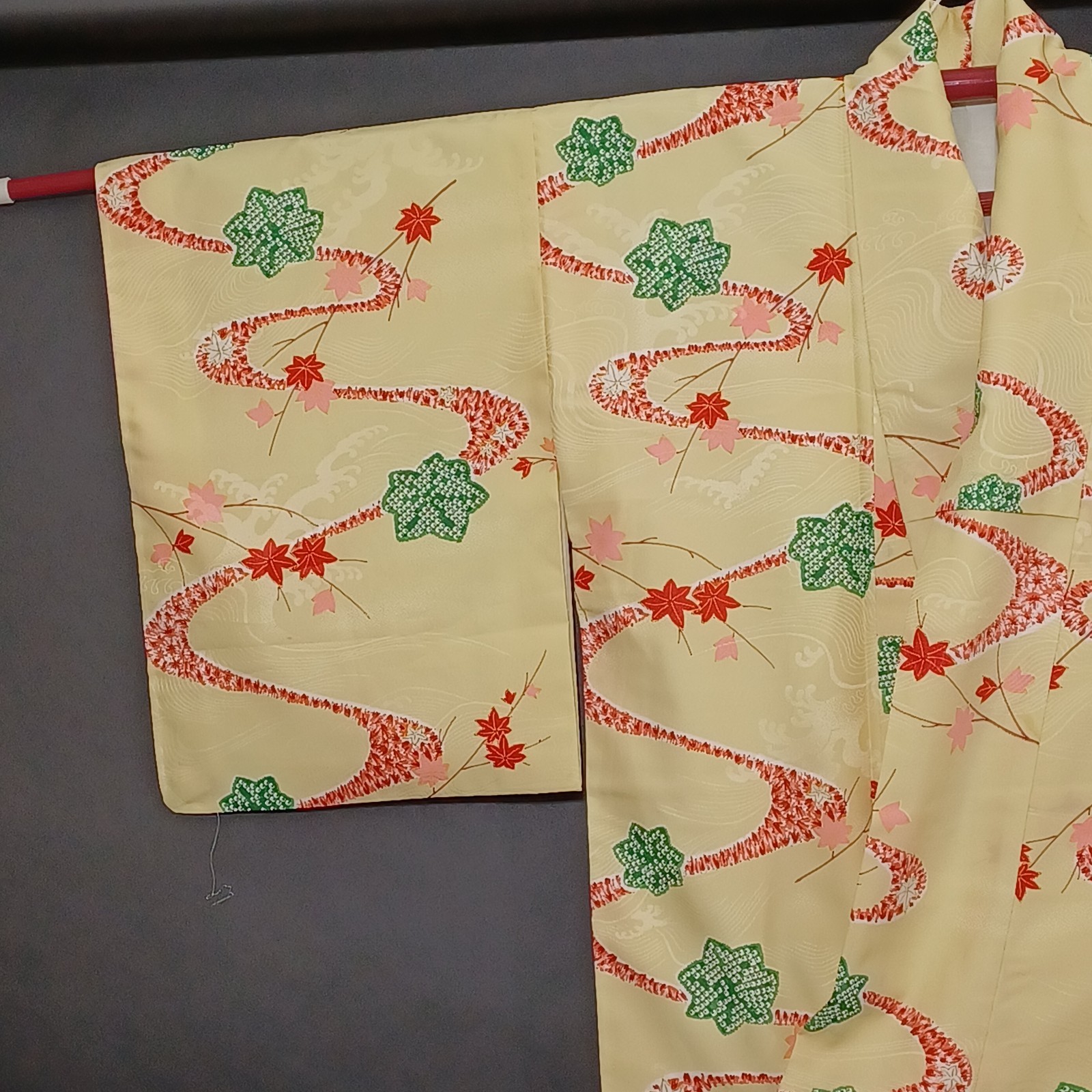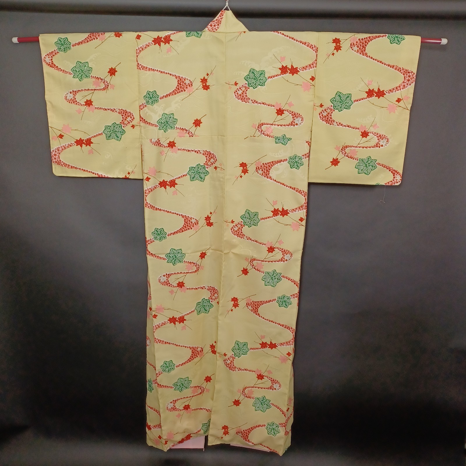 Used Vintage Japanese Silk Kimono Robe Long 60.6 in 24.8 in Waist Width