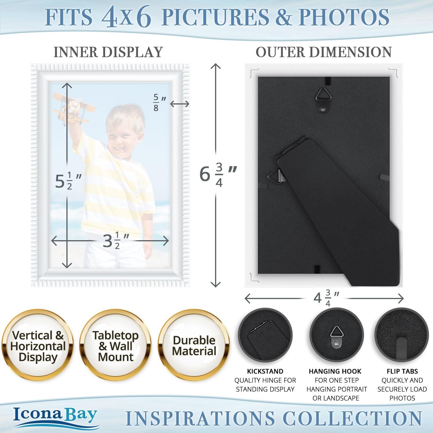 4x6 White Picture Frame with Detailed Molding, Modern Tabletop or Wall Display