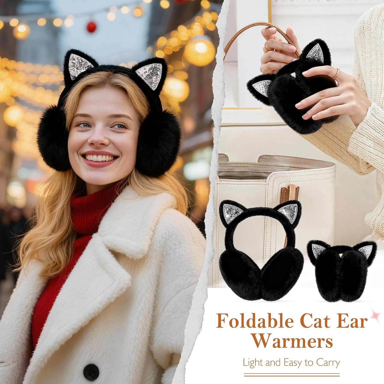 Ear Muffs for Winter Women - Foldable Cute Cat Ear Earmuffs for Women Fuzzy Faux