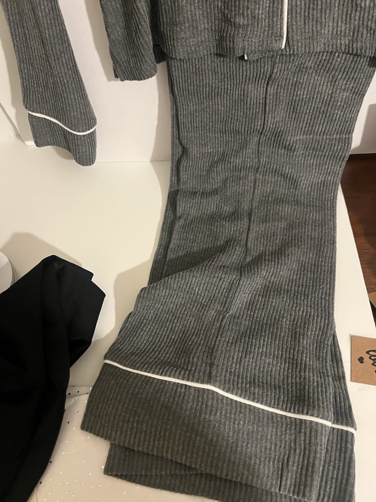 как выглядит Womens Cozy Ribbed Notch Collar Long Sleeve Shirt and Pants Pajama Set NEW фото