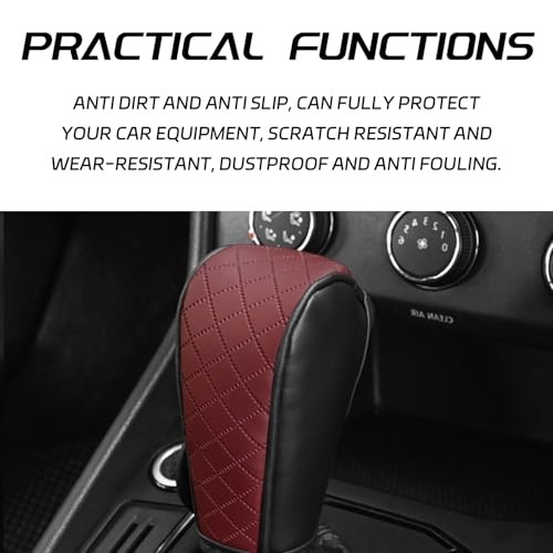 Leather Car Gear Shift Knob Cover, Exquisite Embroidery Design, Burgundy