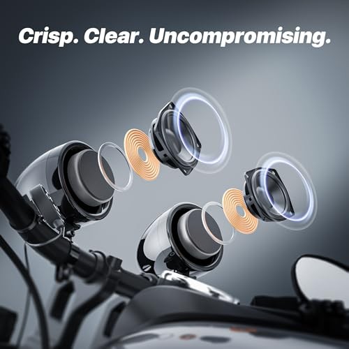 Bluetooth Motorcycle Speakers and Amplifier Audio Sound System, FM TJ4-R Black