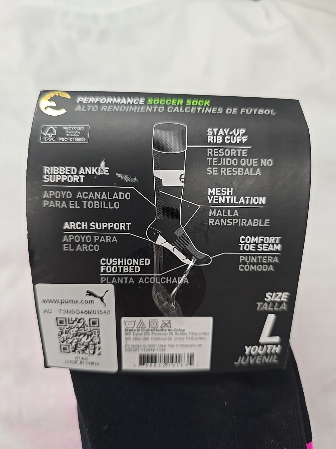 NEW Puma Procat Soccer Socks Youth Size L Performance 2 Pair Pack PInk Black