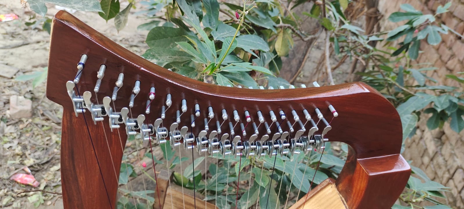 Rosewood Celtic Lever Harp 19 String Irish Lyre Harp w/ Levers Carry Bag H