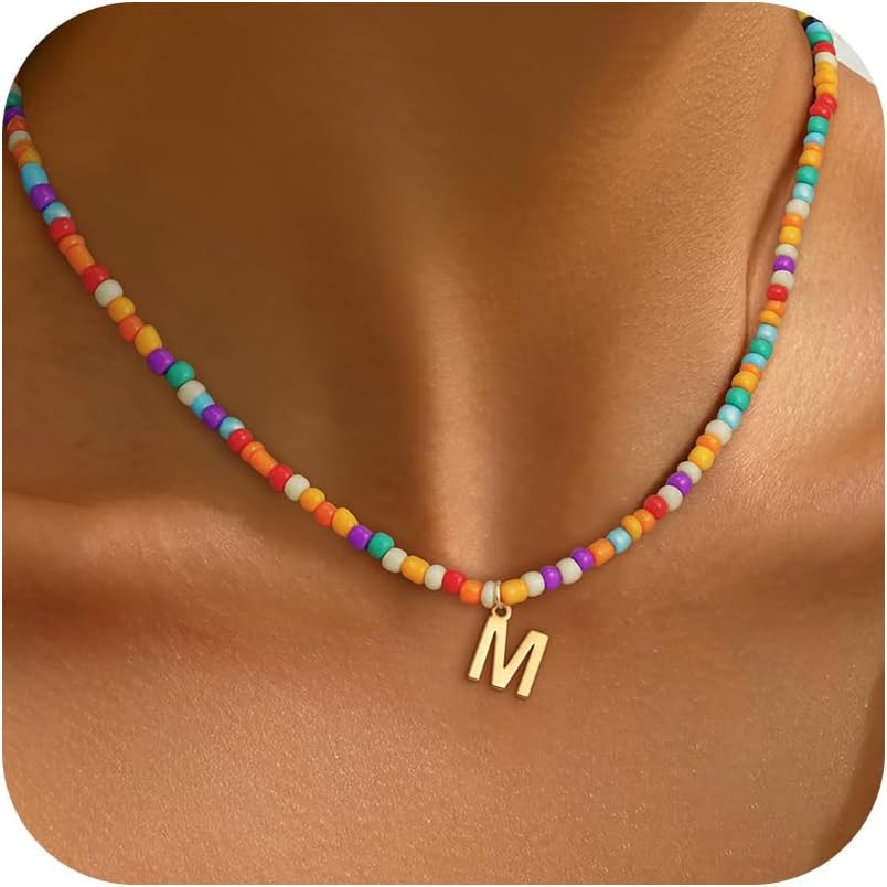 Colorful Initial Necklaces for Girls Women - Cute Beaded Choker Initial Necklace