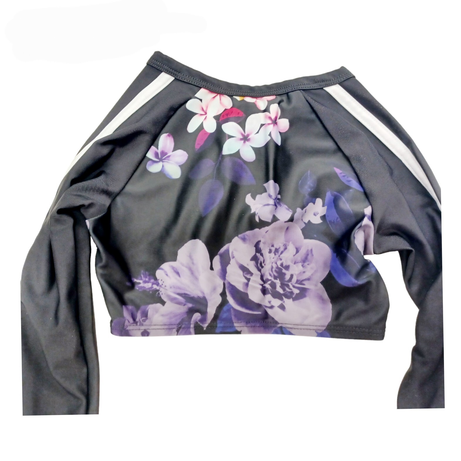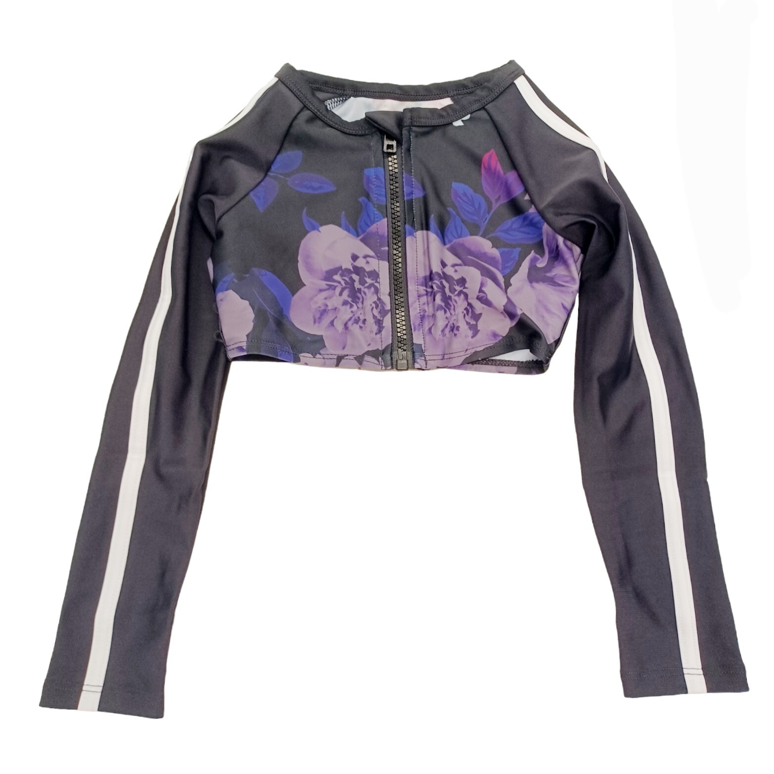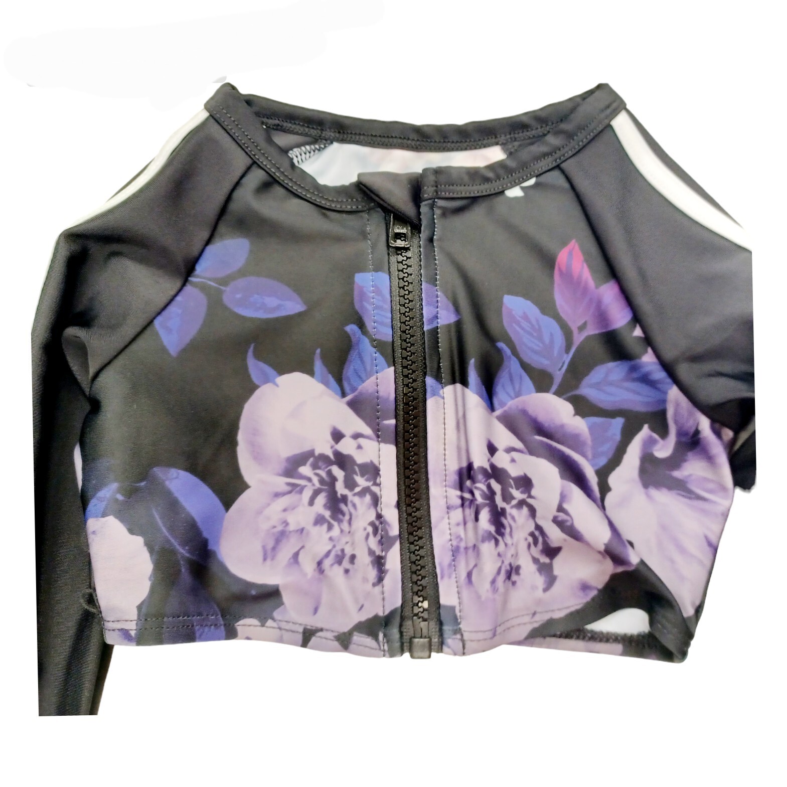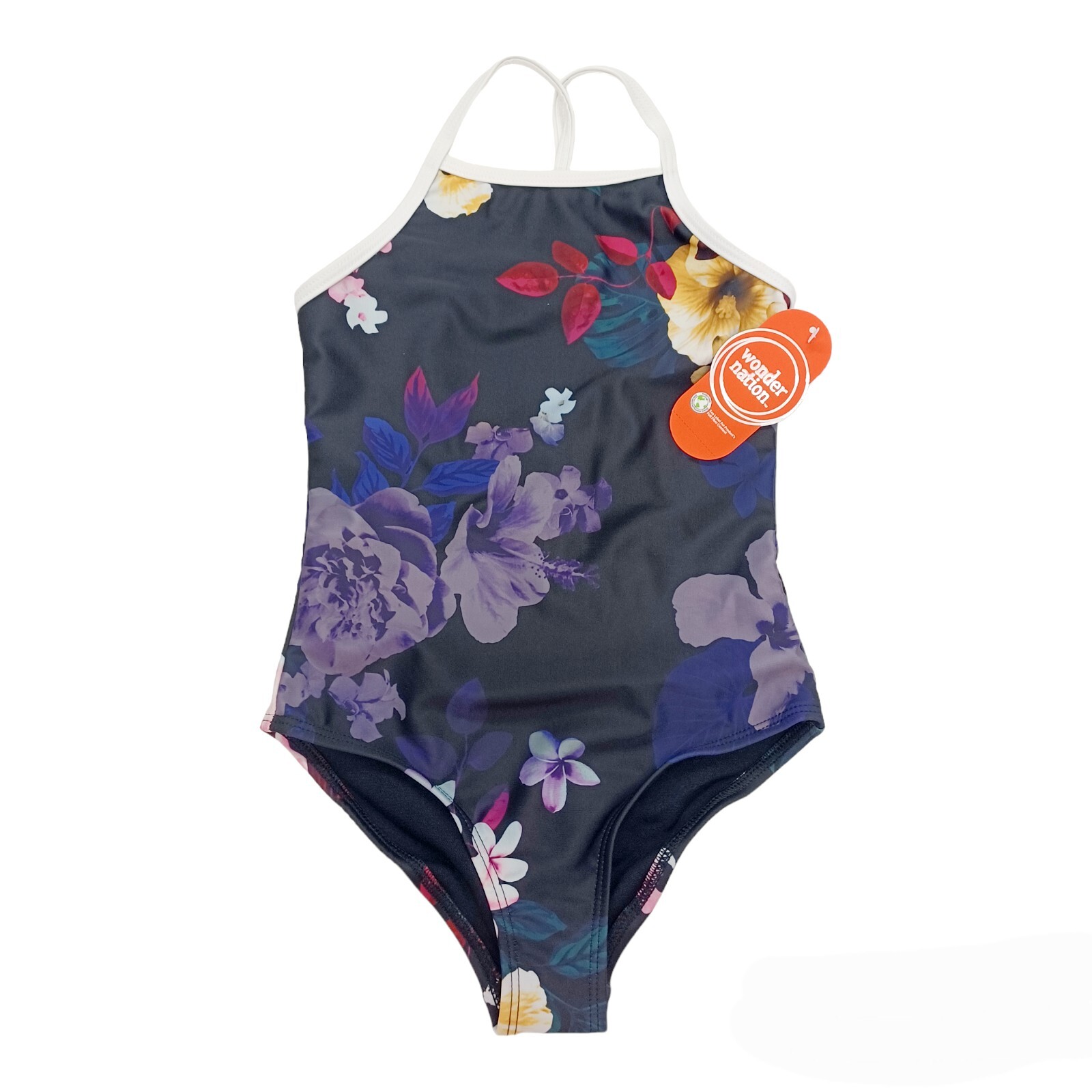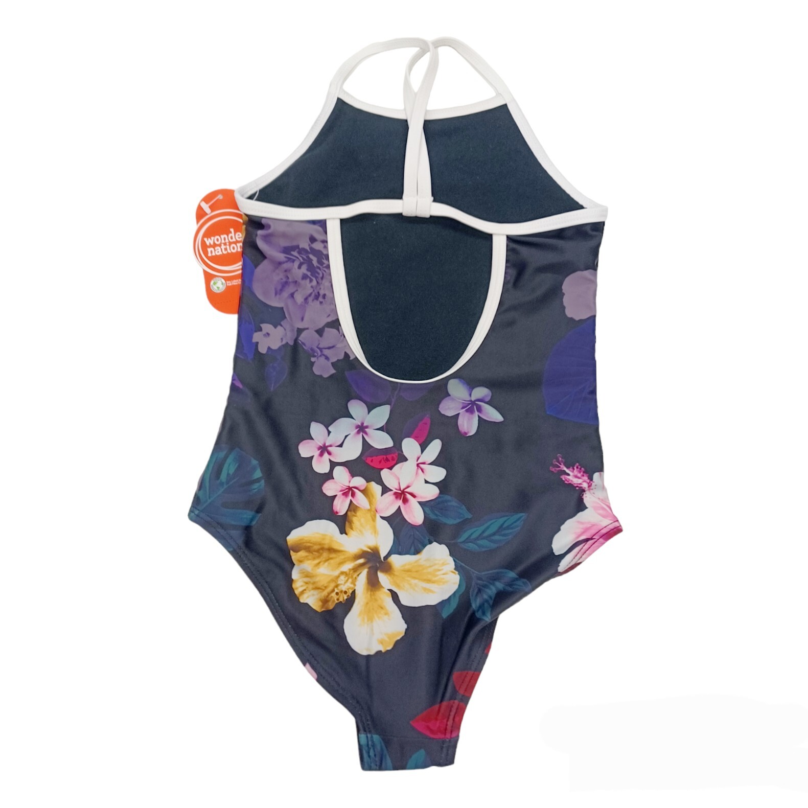 Wonder Nation Rash Guard Swim Set-4/5 Girls-Black-Floral-1 Pc w/Crop Zip Top