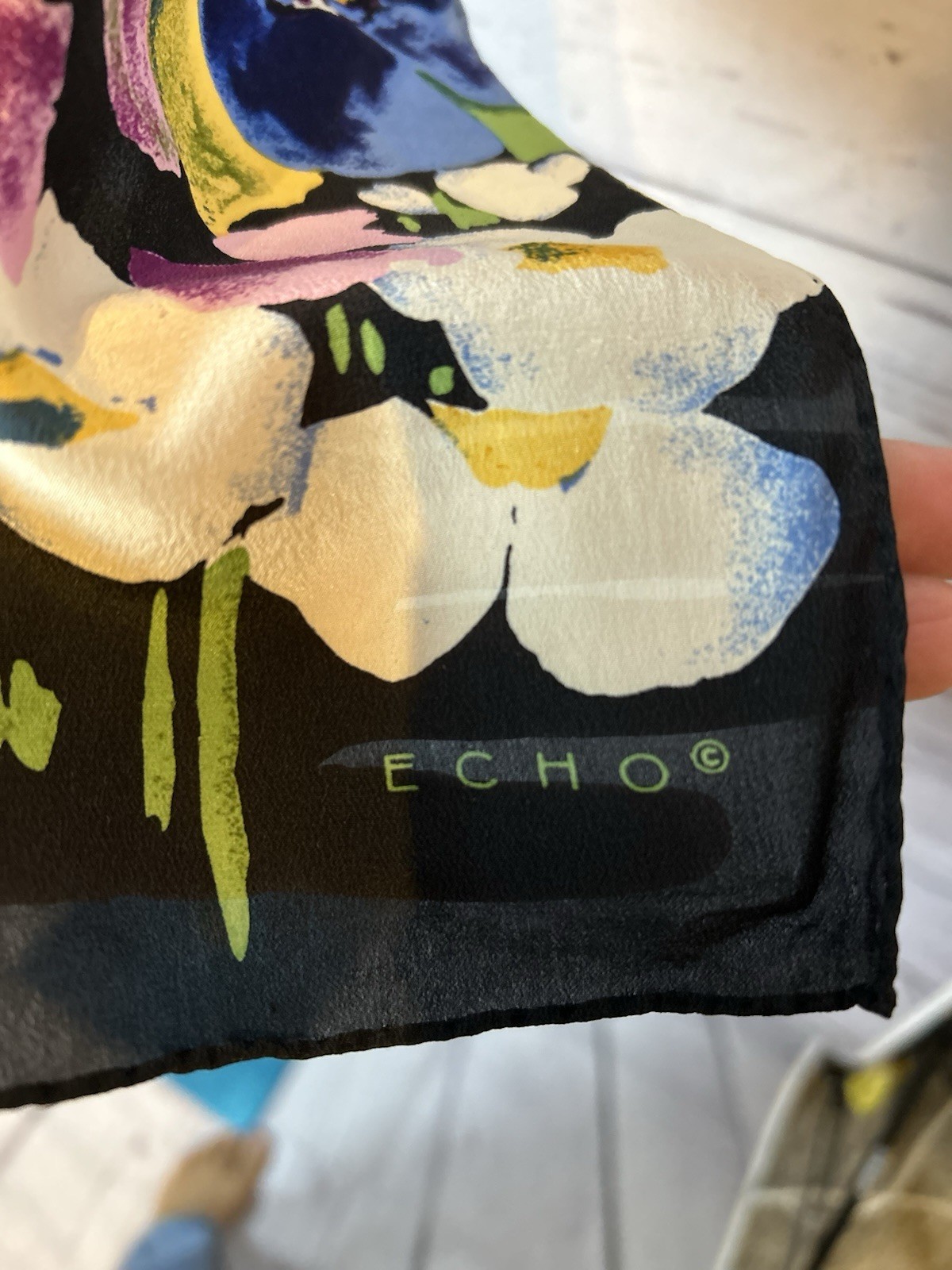 Vintage Echo Multi Floral Silk Scarf 48x10 Classic Retro Print