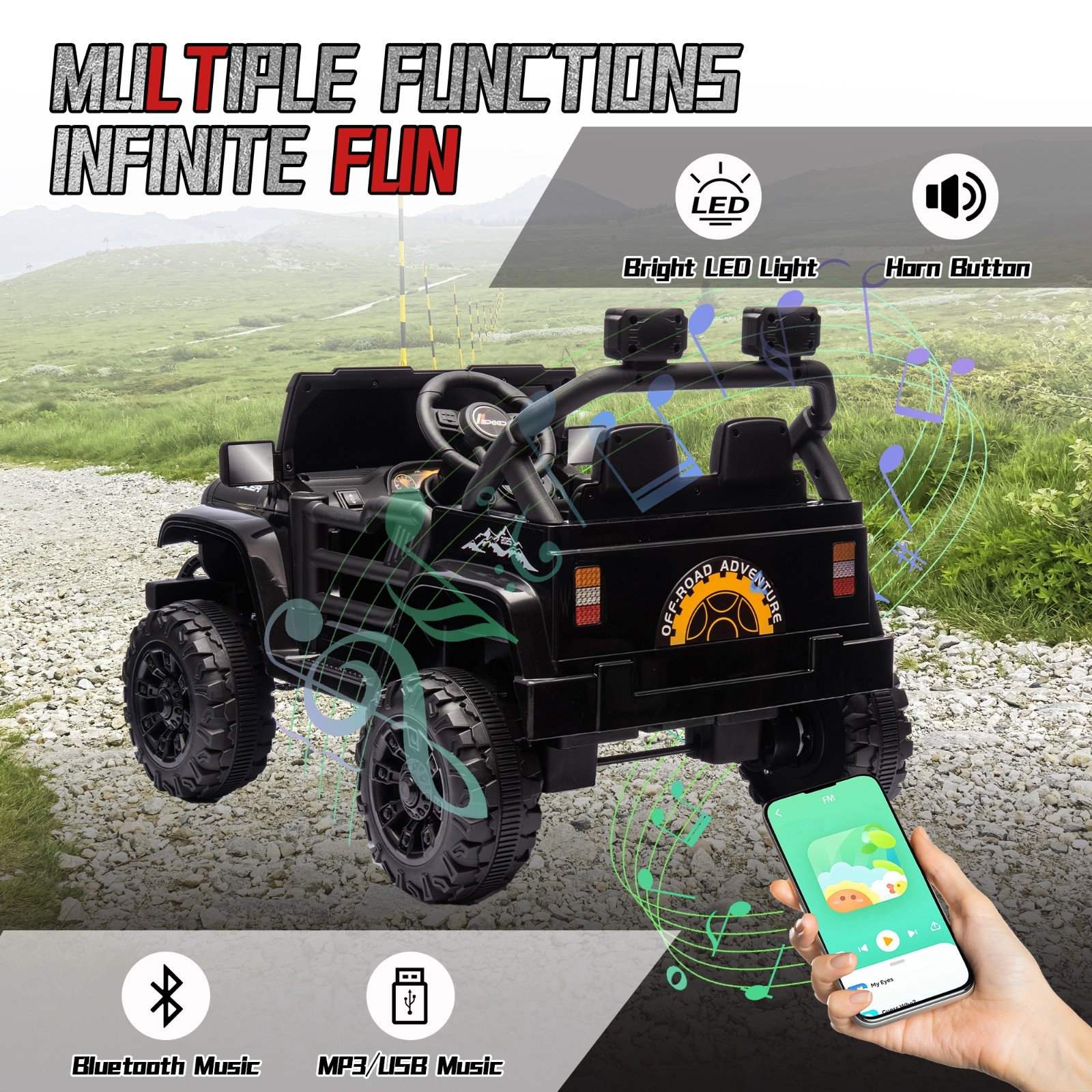 12V Ride On Toys Electric Car for Kids w/Remote, LED,Battery Powered Truck,Black