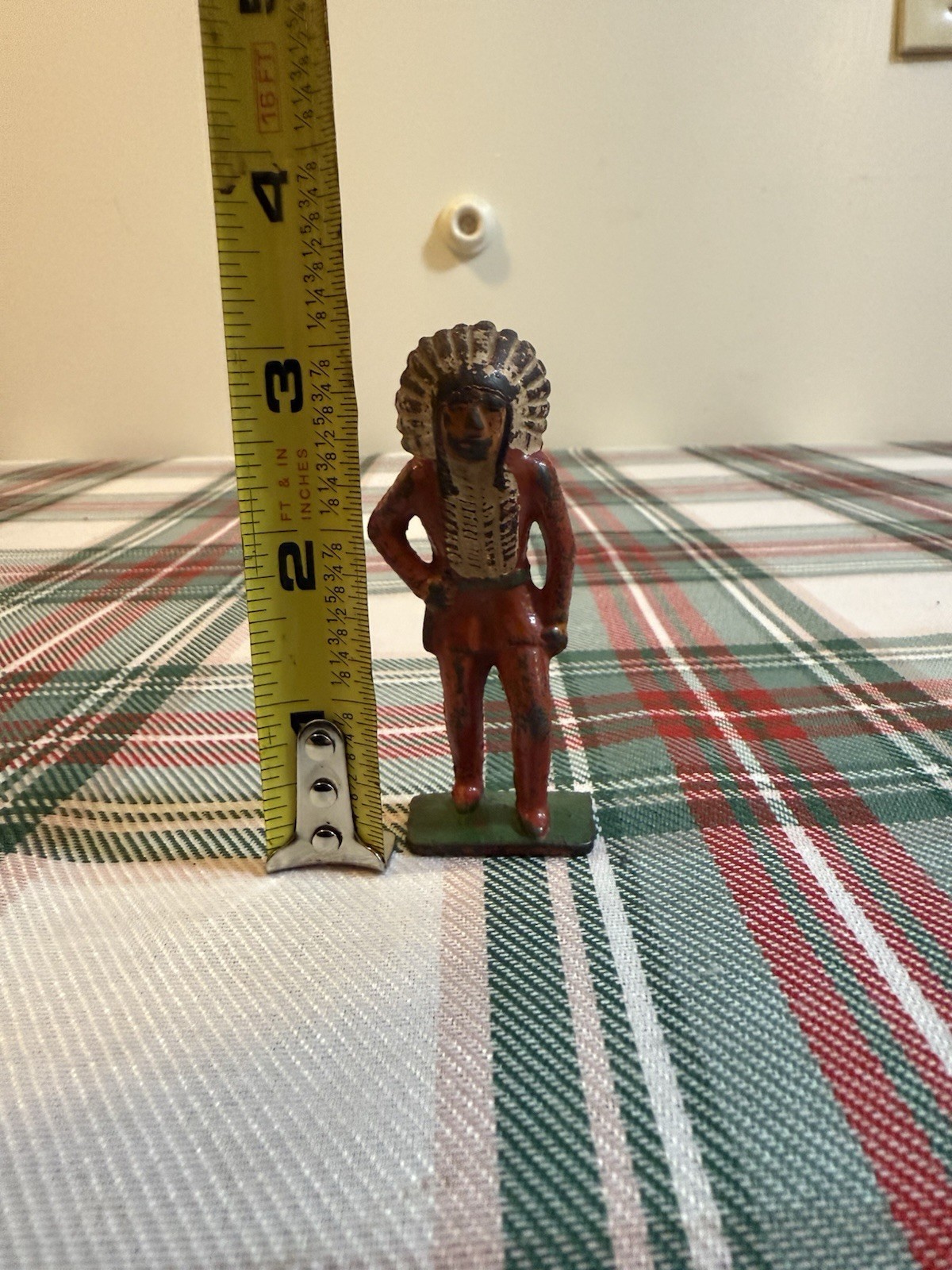 как выглядит GREY IRON VINTAGE LEAD FIGURE - G46 11 - INDIAN CHIEF WITH KNIFE фото