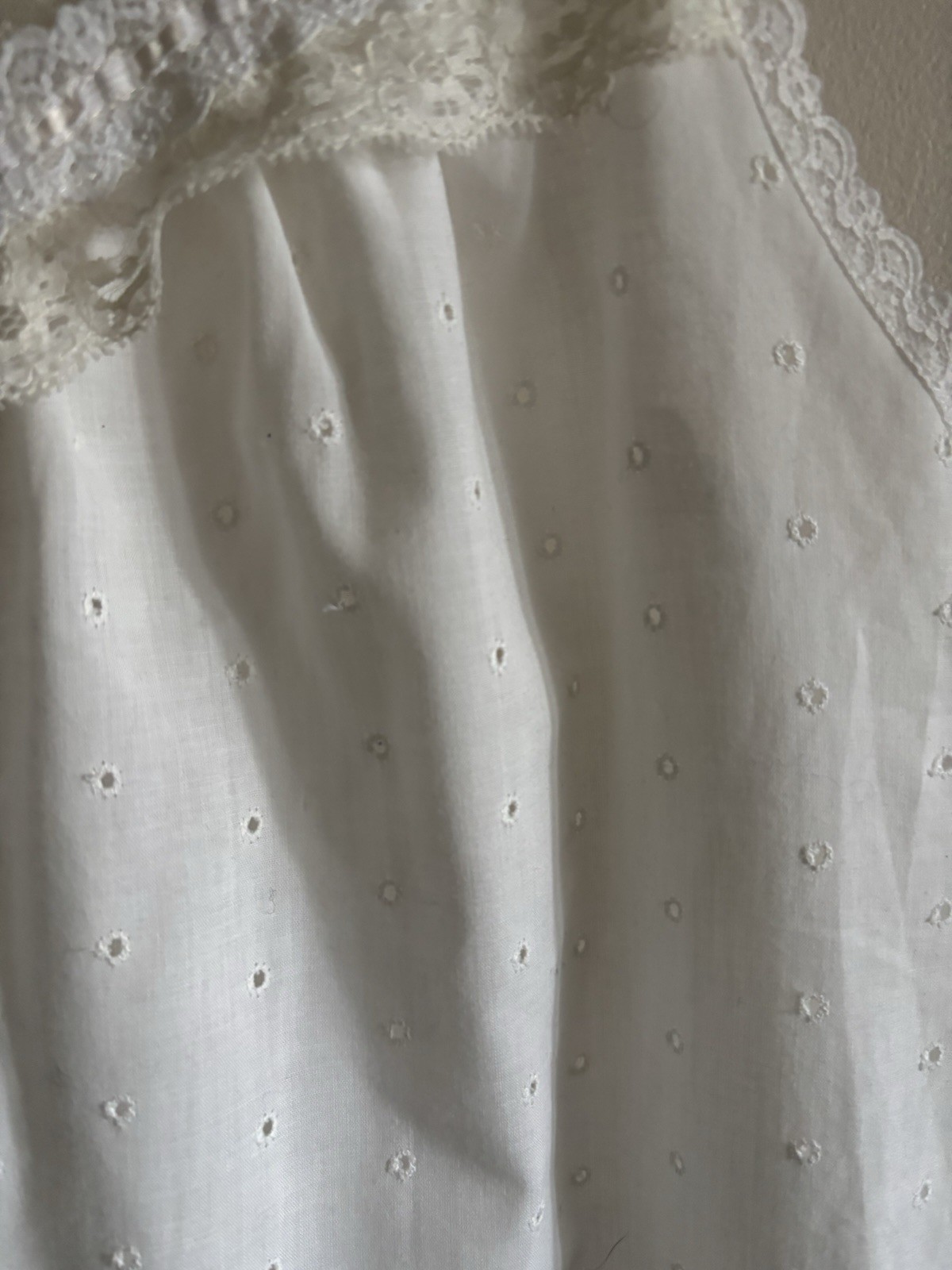 как выглядит Vintage Babydoll Night Gown Sleeveless Lace Eyelet 1970s USA Long Medium фото