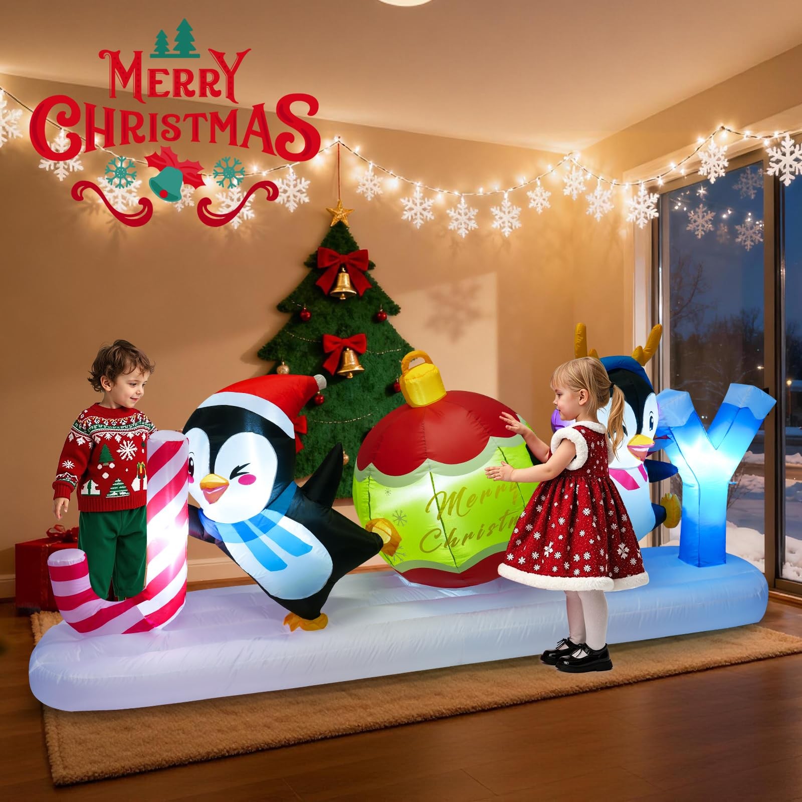 10FT Christmas Inflatable Outdoor Decorations, Christmas Blow Up Joy with Dan...
