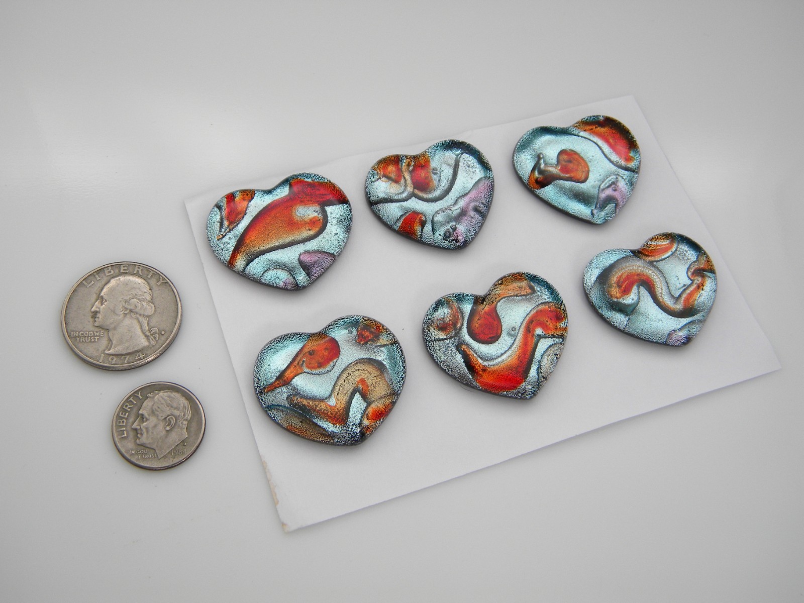 как выглядит Lot of 6 pcs HEART DICHROIC FUSED GLASS for pendant E7 CABS HANDMADE MOSAIC фото